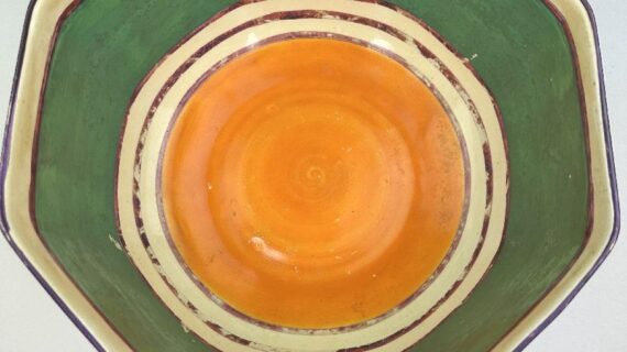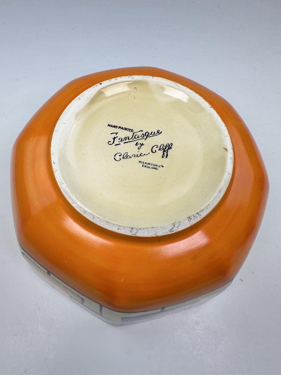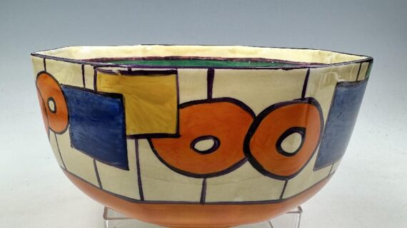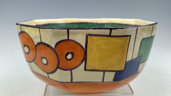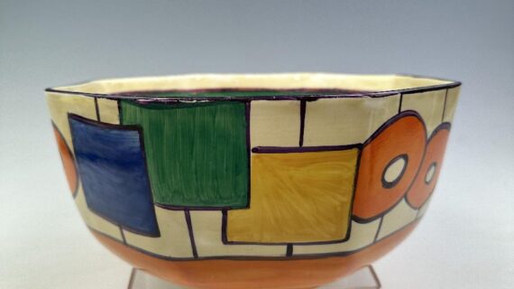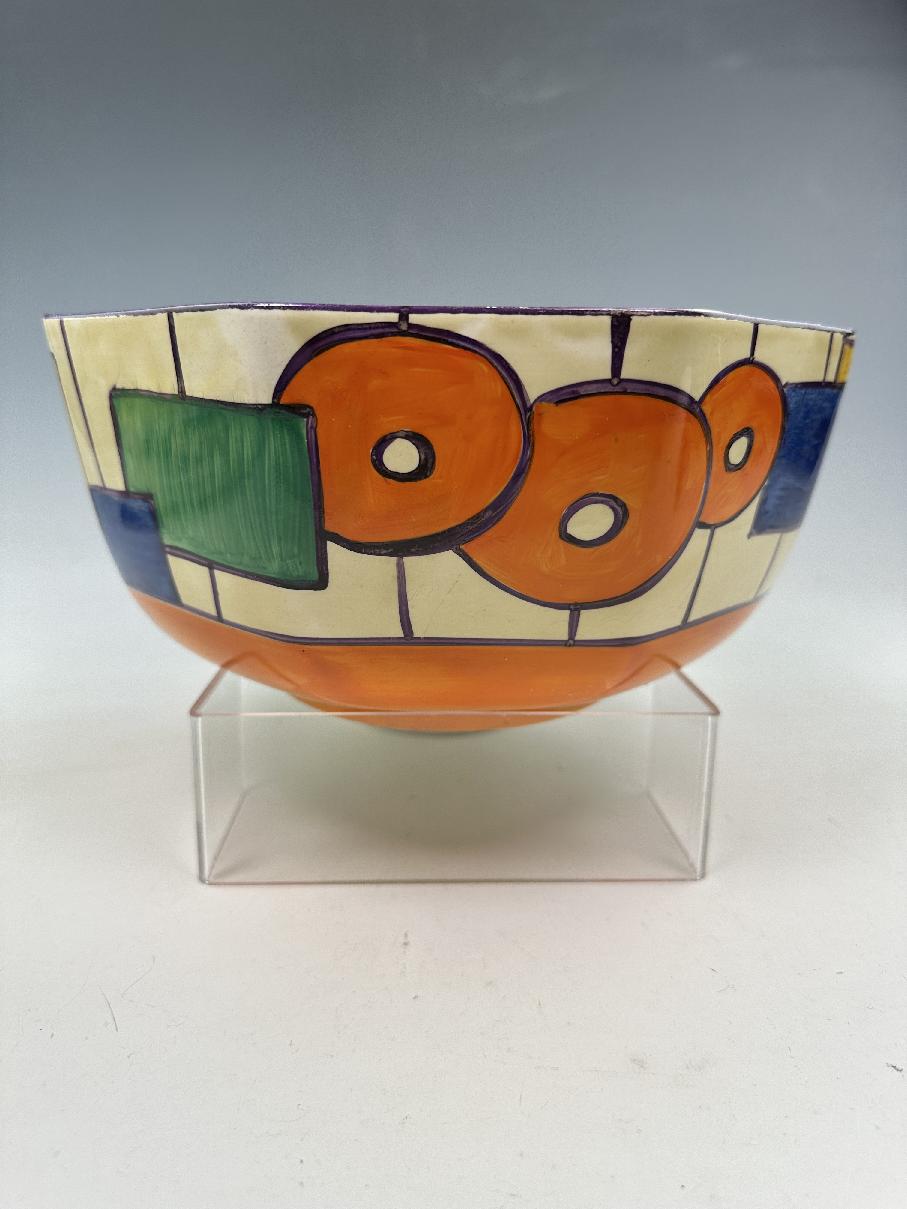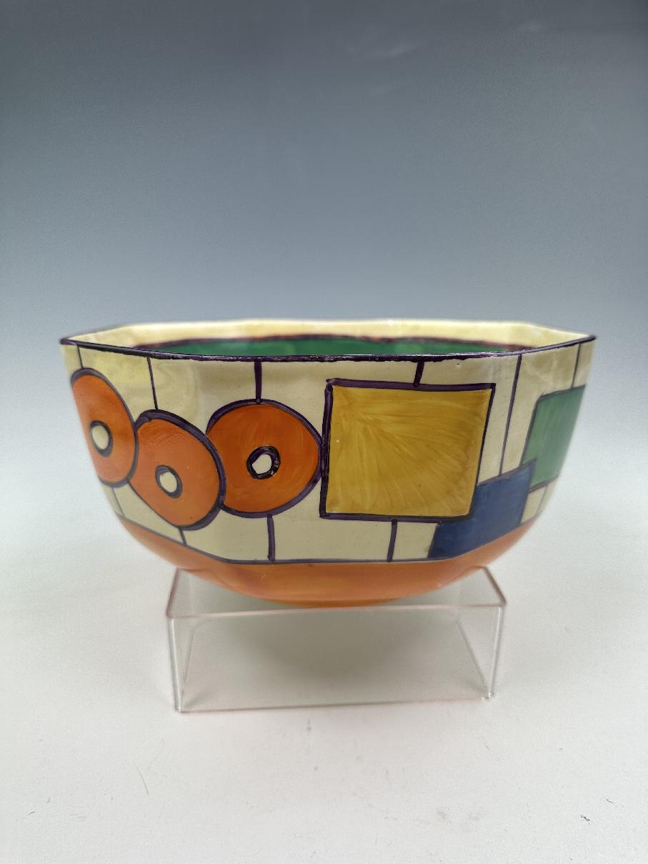 Clarice Cliff ALLSORTS pattern LARGE octagonal fruit bowl.