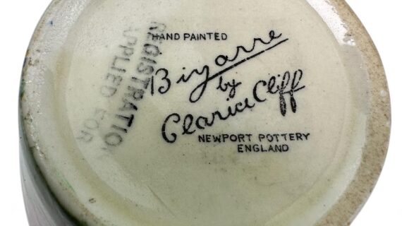 Back stamped Bizarre by Clarice Cliff to the base of all pieces plus impressed date marks for 1932.