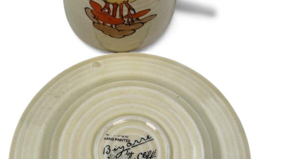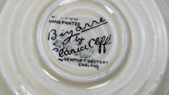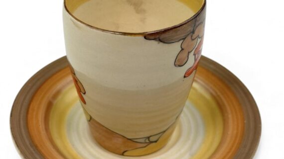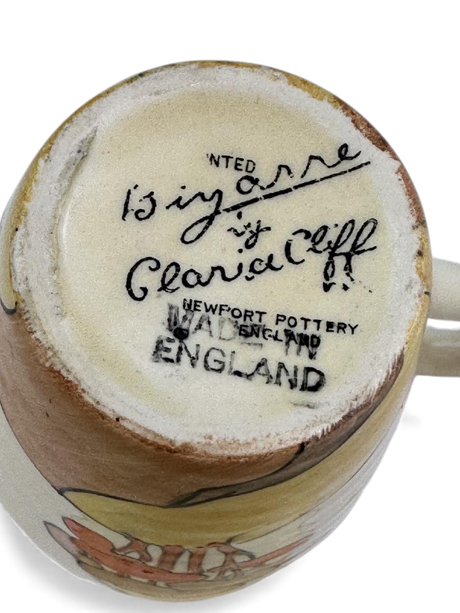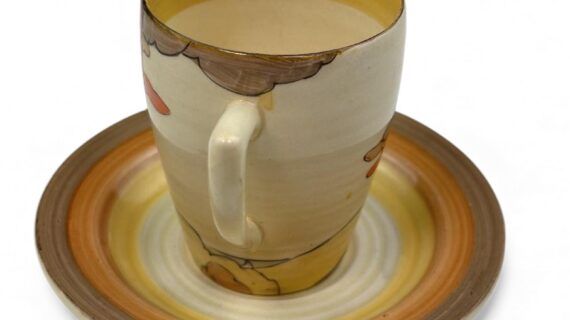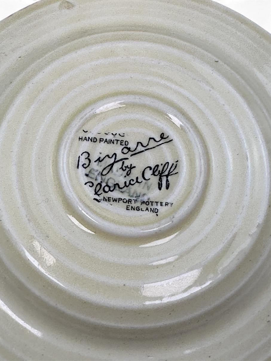 Stamped with the Bizarre by Clarice Cliff mark to both the cup and the saucer.