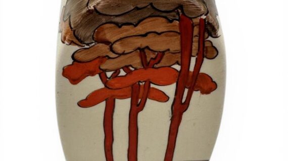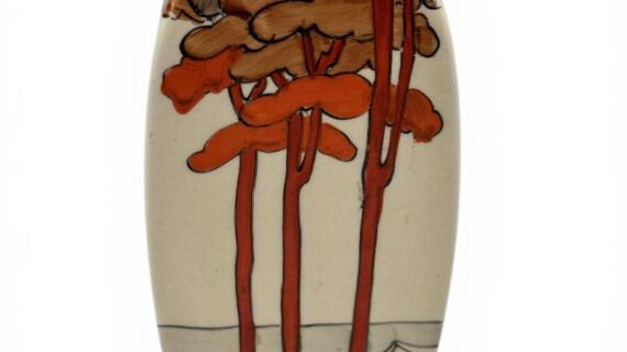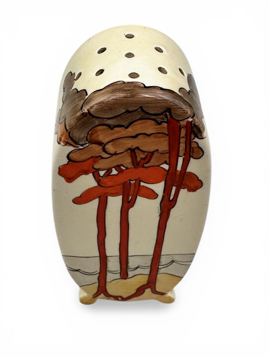 Coral Firs pattern Bon Jour shape sugar sifter, 12.5cm, circa 1933.