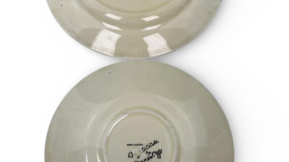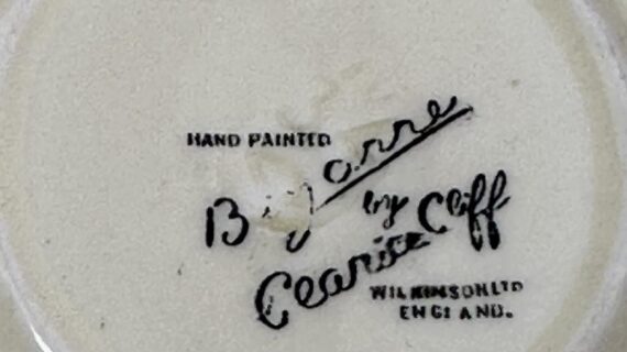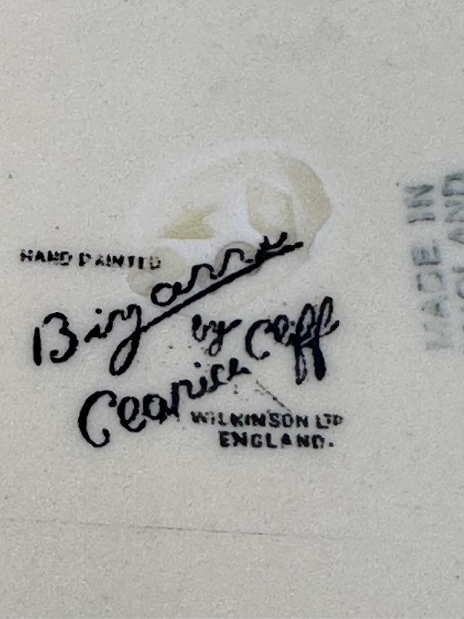 All three pieces are stamped Bizarre by Clarice Cliff and have impressed date marks for 1934.