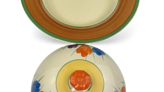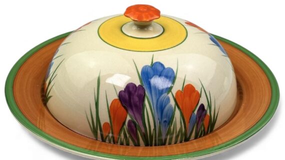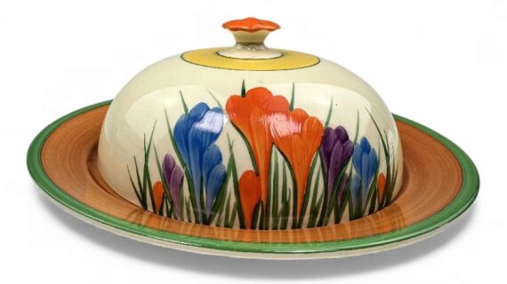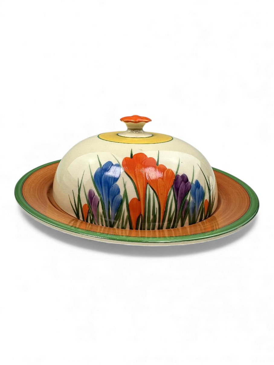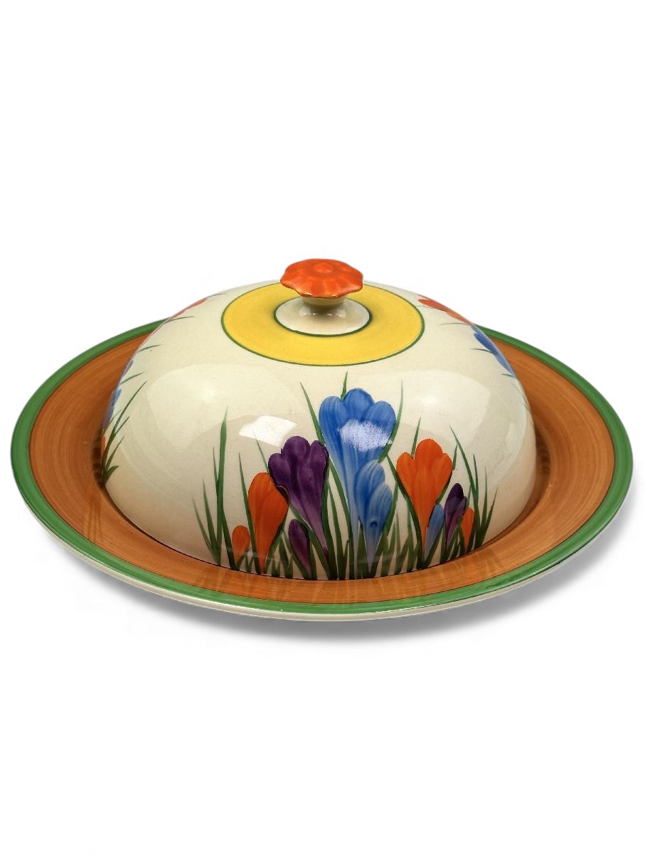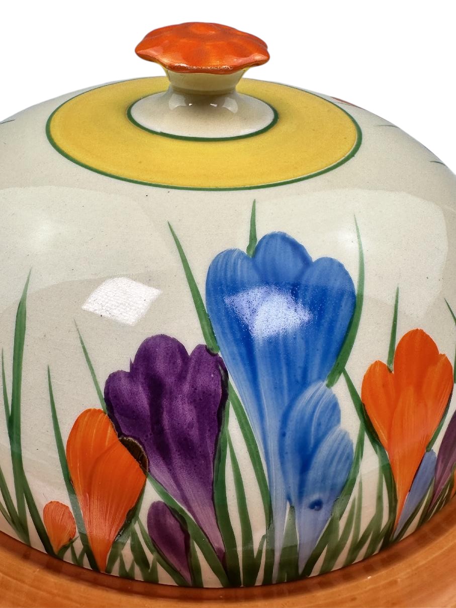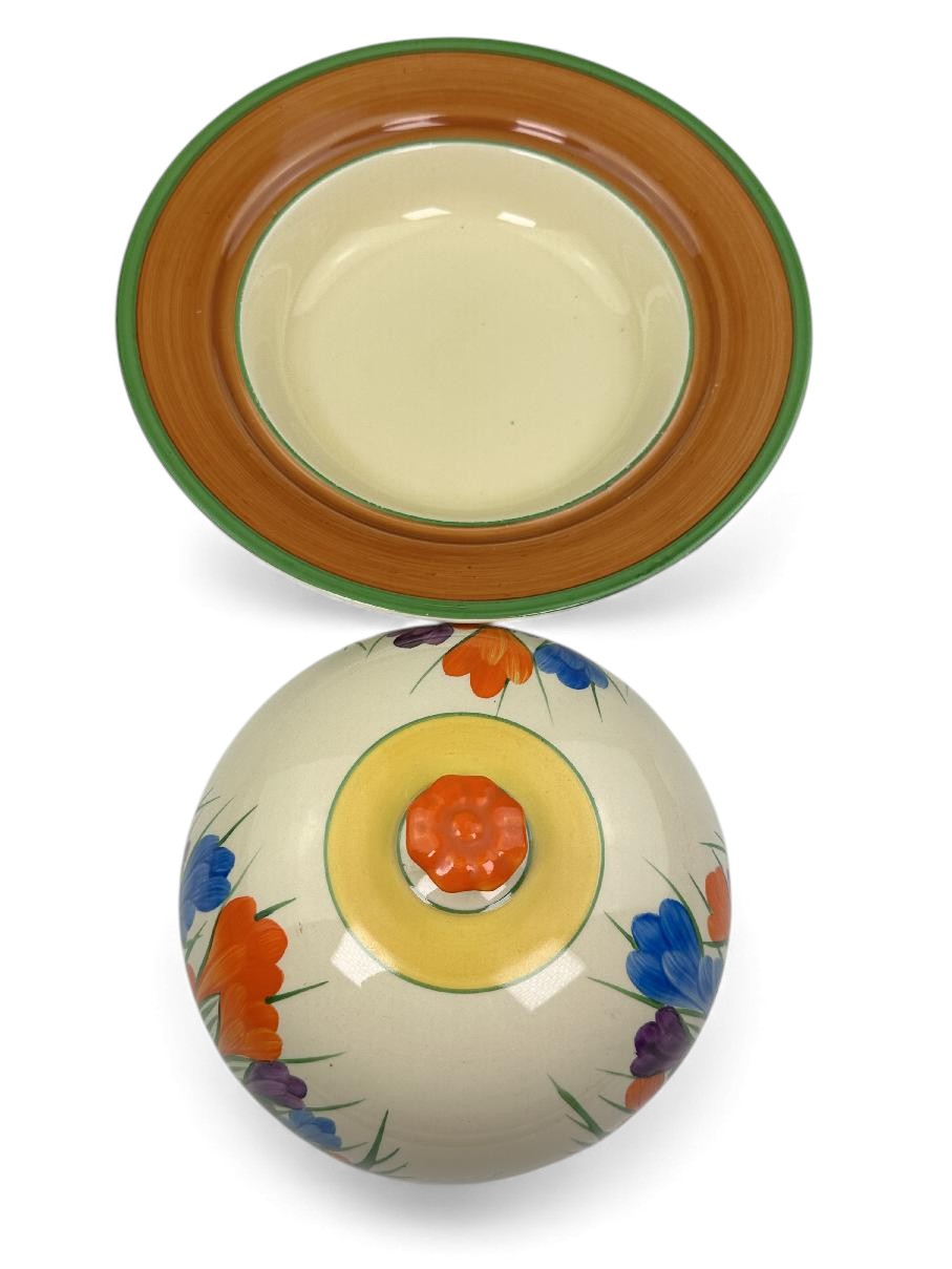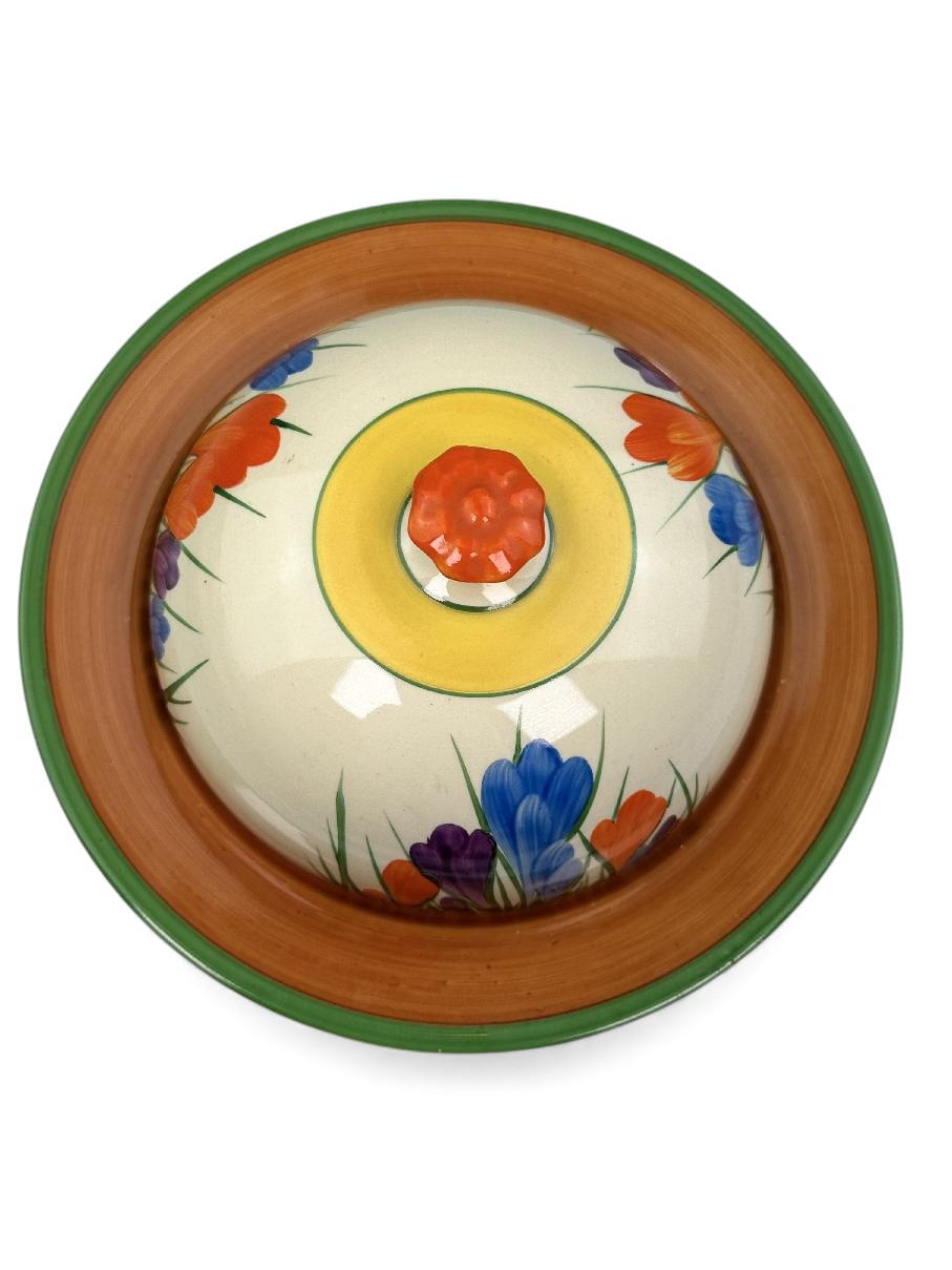 Clarice Cliff CROCUS pattern covered crumpet/muffin dish.