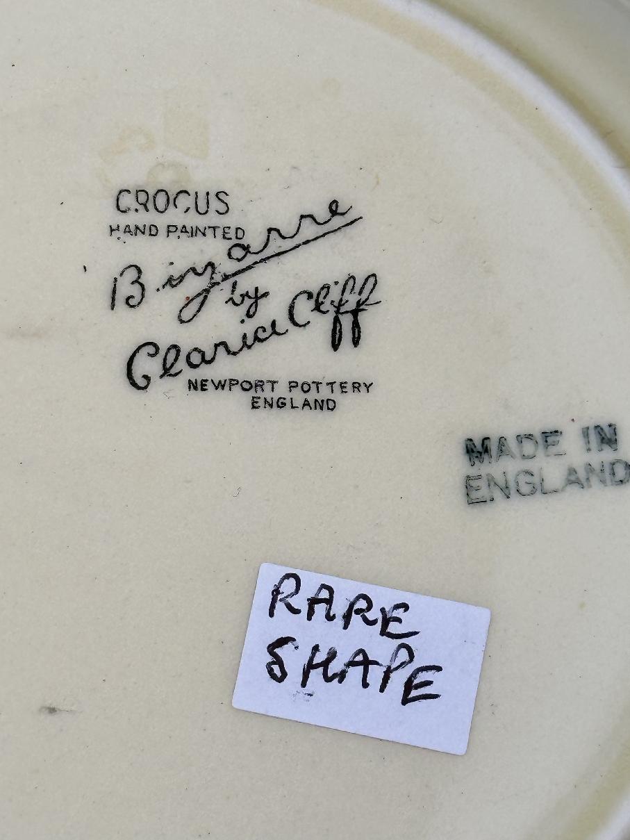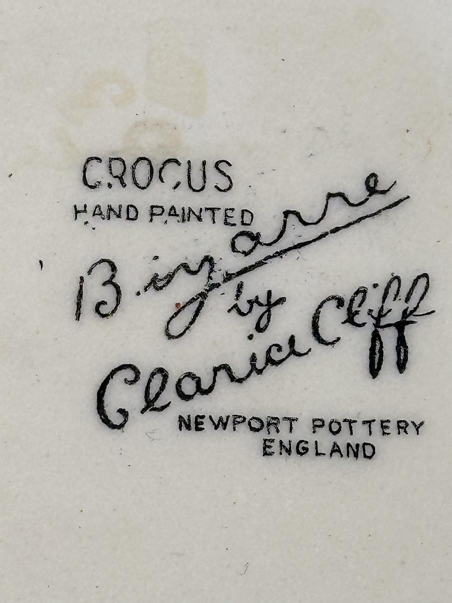 Stamped CROCUS, Bizarre by Clarice Cliff to the base and has an impressed date stamp for 1933.