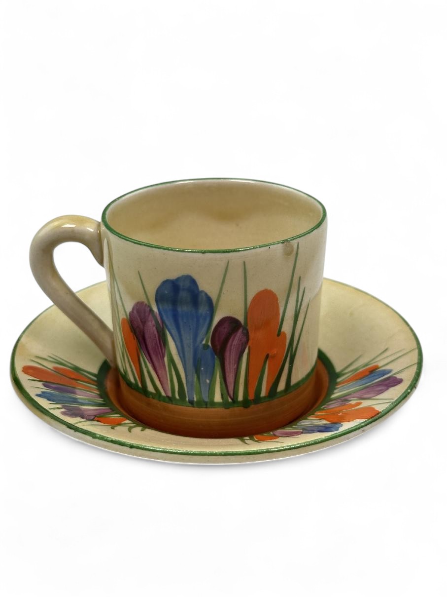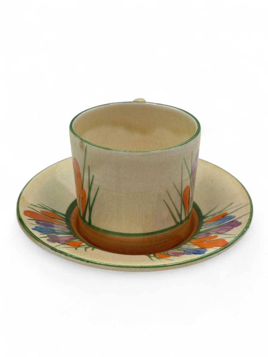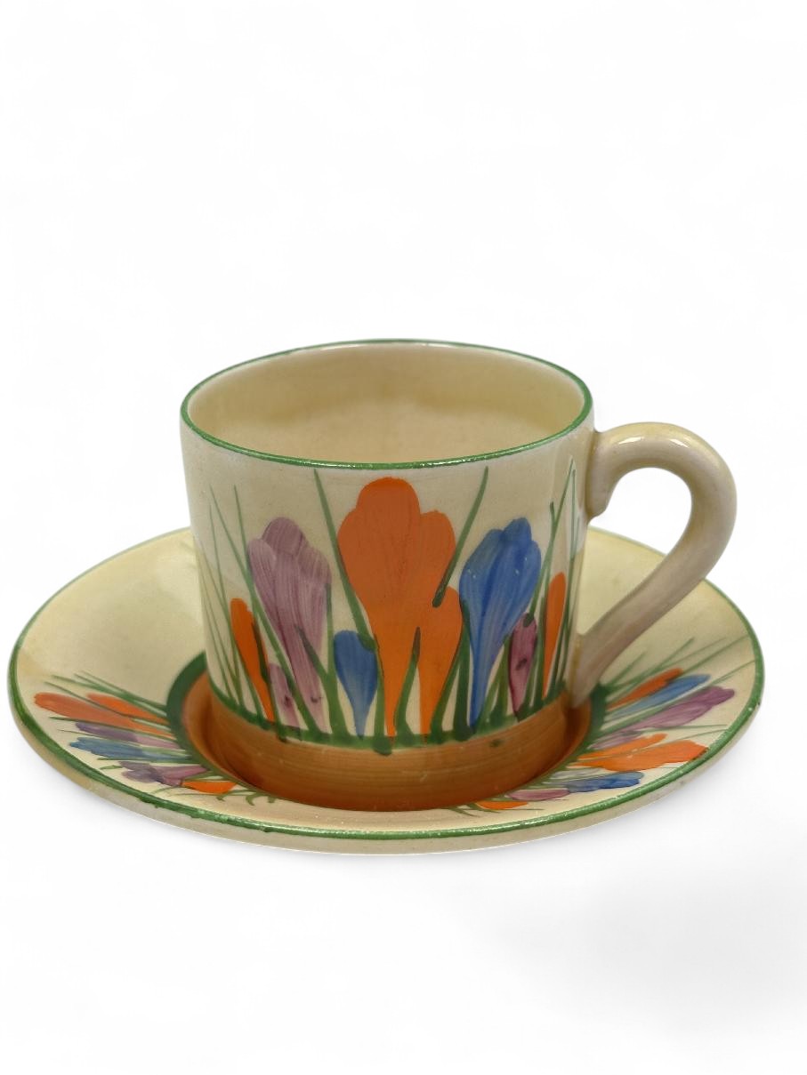 Clarice Cliff CROCUS pattern demitasse coffee can & saucer.