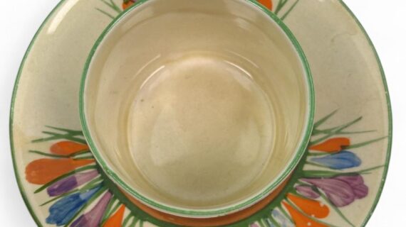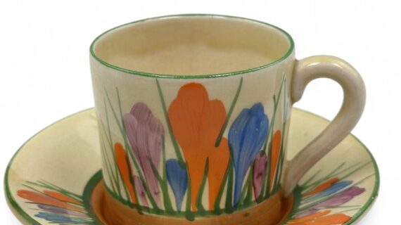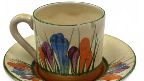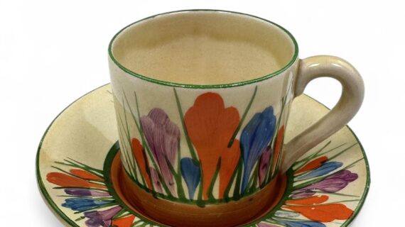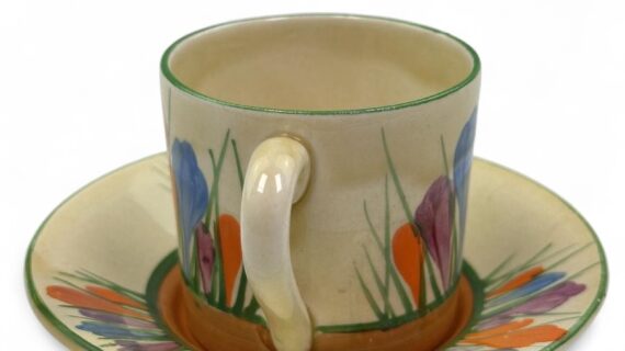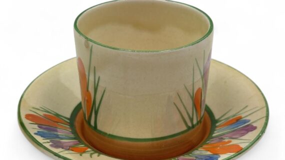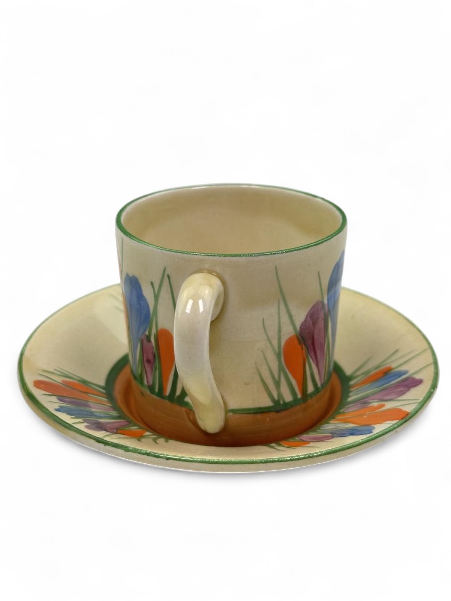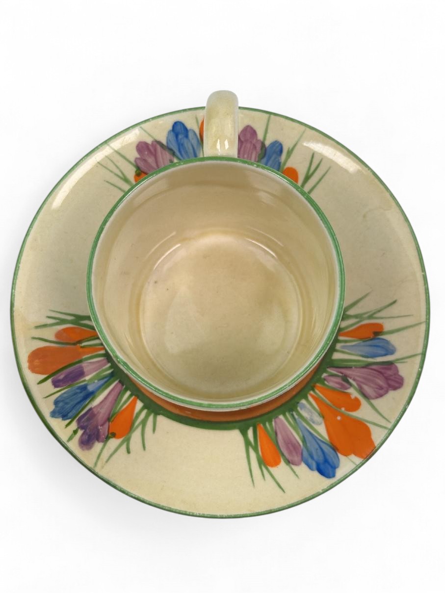 Clarice Cliff CROCUS pattern demitasse coffee can & saucer.