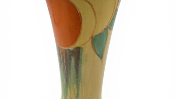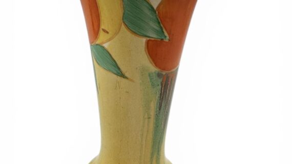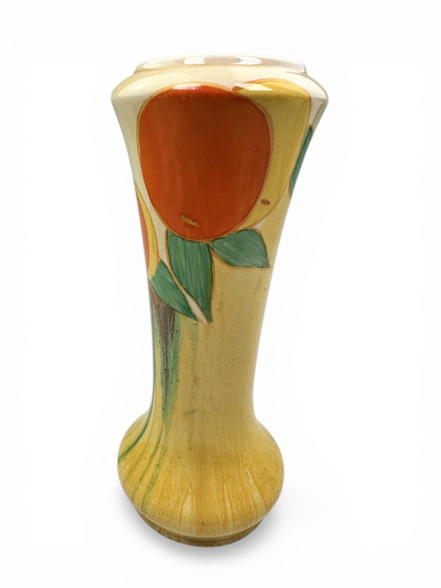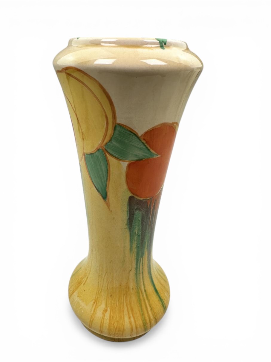Delecia Citrus/Peaches shape 187 vase, circa 1932. Height of the vase is 21.5cm.