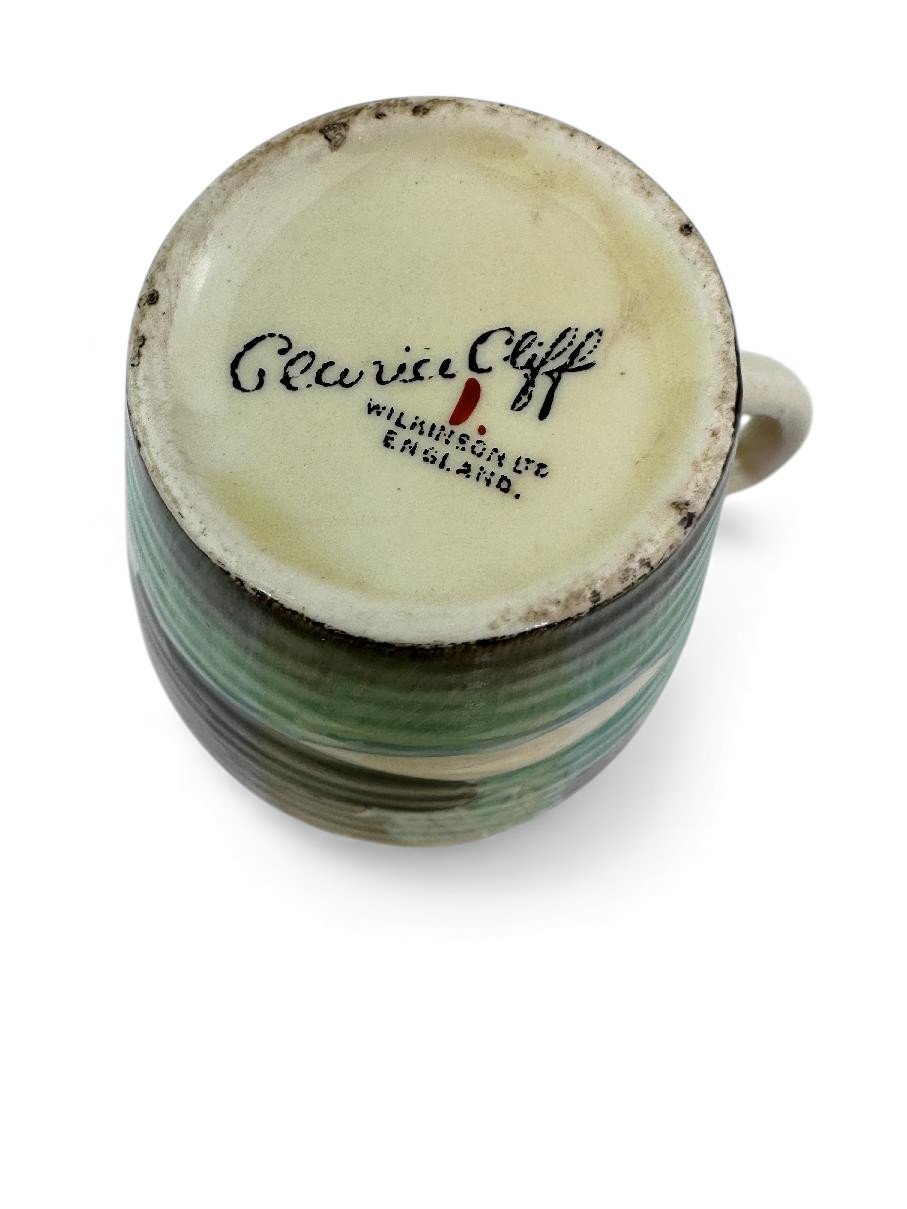 Stamped Clarice Cliff in script to the base of the cup.