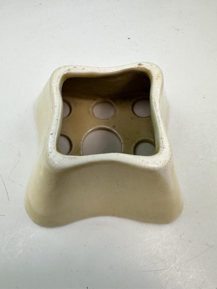 The basket is in very good condition with no chips, cracks or restoration. It has it’s correct flower frog (there are a couple of small chips to the frog).