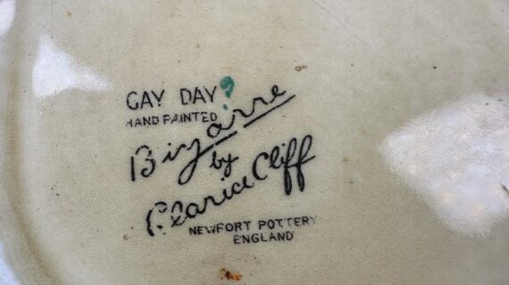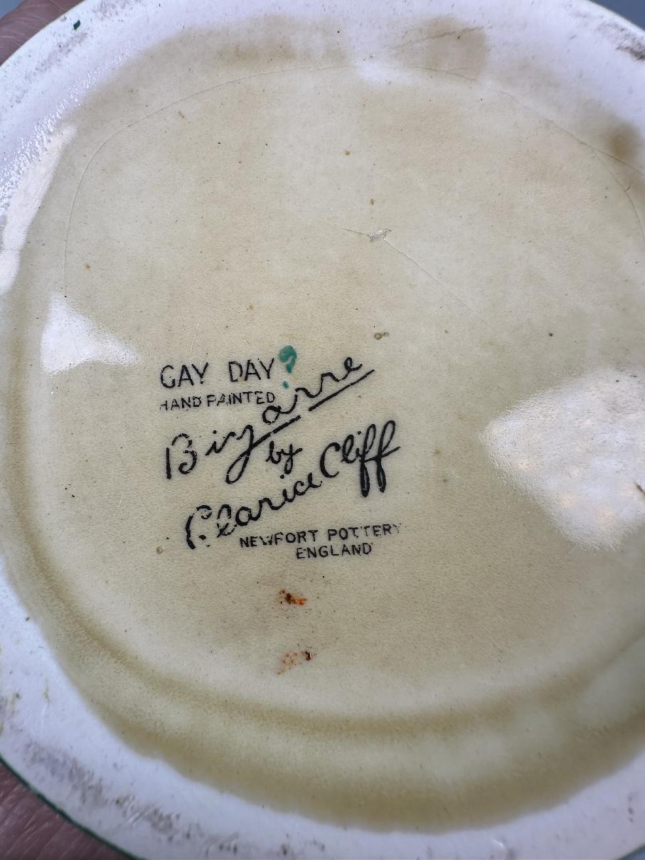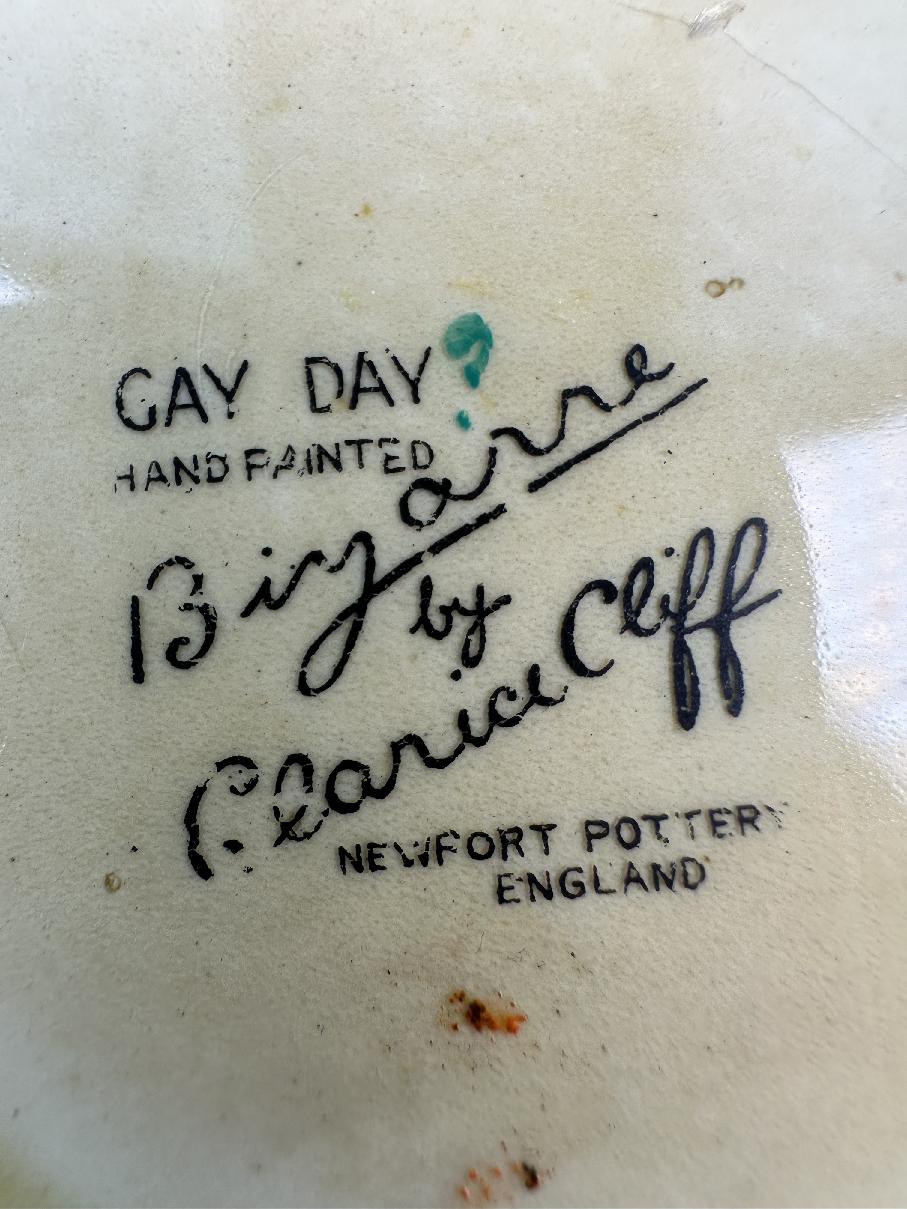 Stamped with the GAY DAY, Bizarre by Clarice Cliff mark to the base.