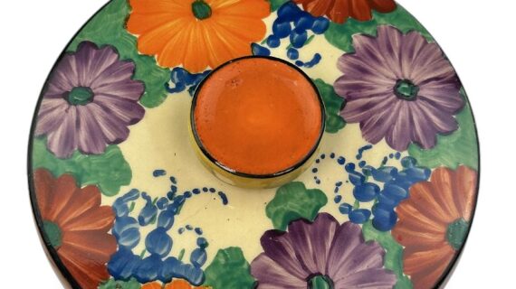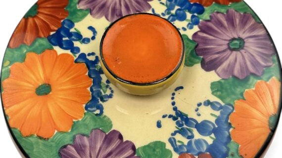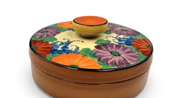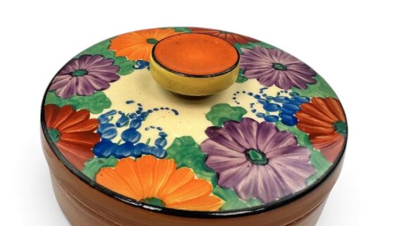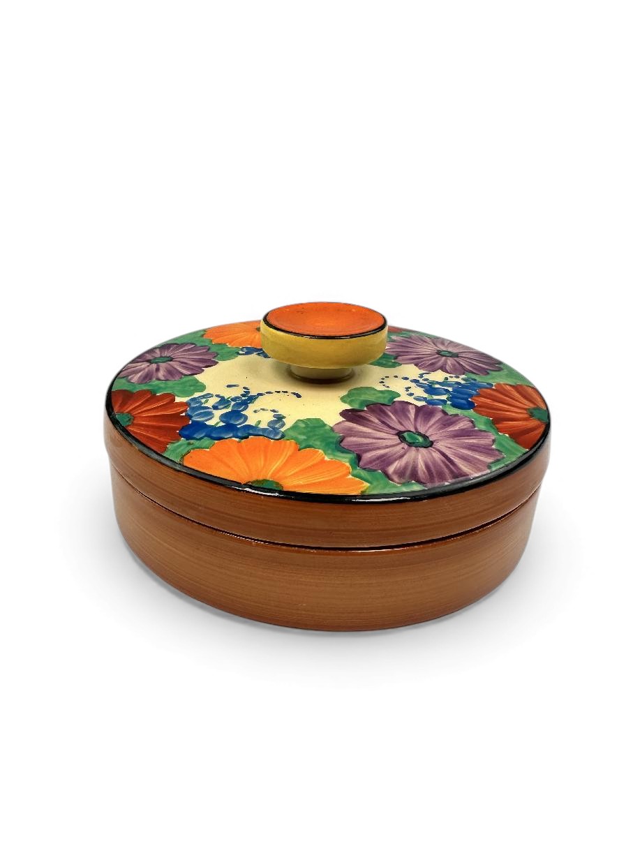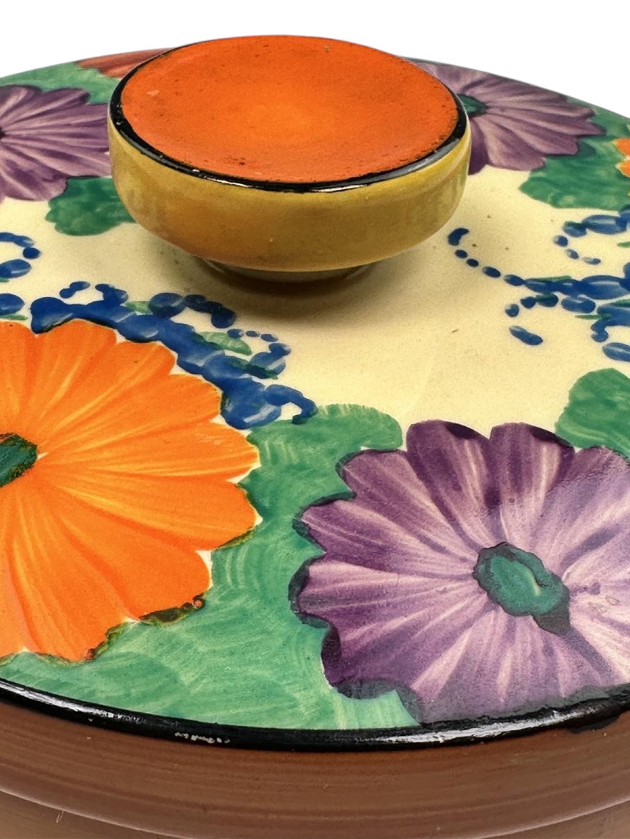 Very nicely and expertly hand-painted with flowers across the whole of the lid, this is one of Clarice’s signature patterns and you can certainly see why!