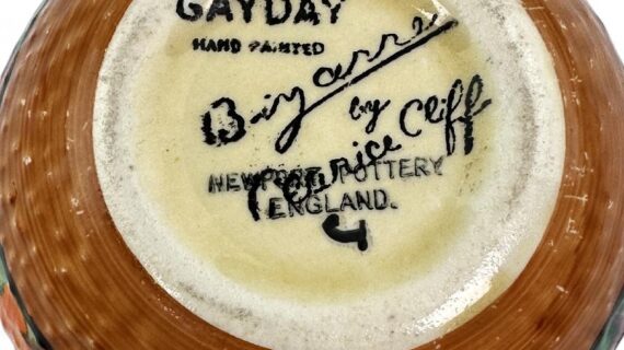 Back-stamped GAYDAY, Bizarre by Clarice Cliff to the base.