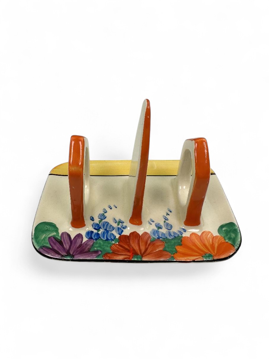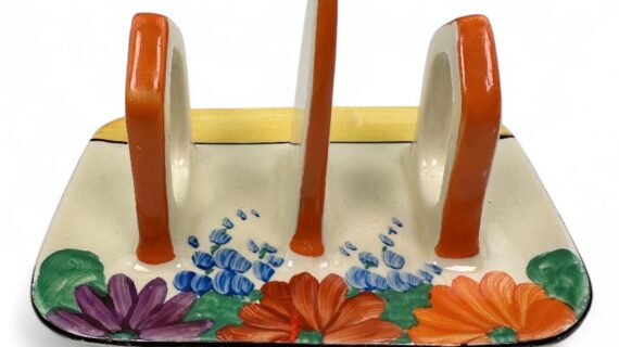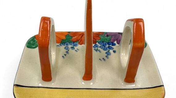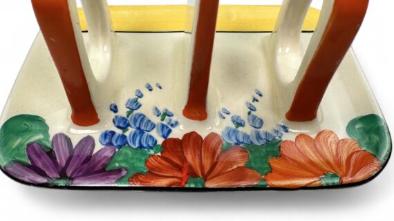 Hand painted with one of Clarice’s most popular patterns. This one is for the avid toast rack collector or the CC collector who doesn’t have this great shape in their collection.