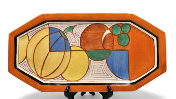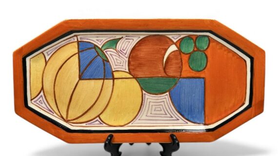 Clarice Cliff MELON (orange) shape 334 sandwich serving plate.