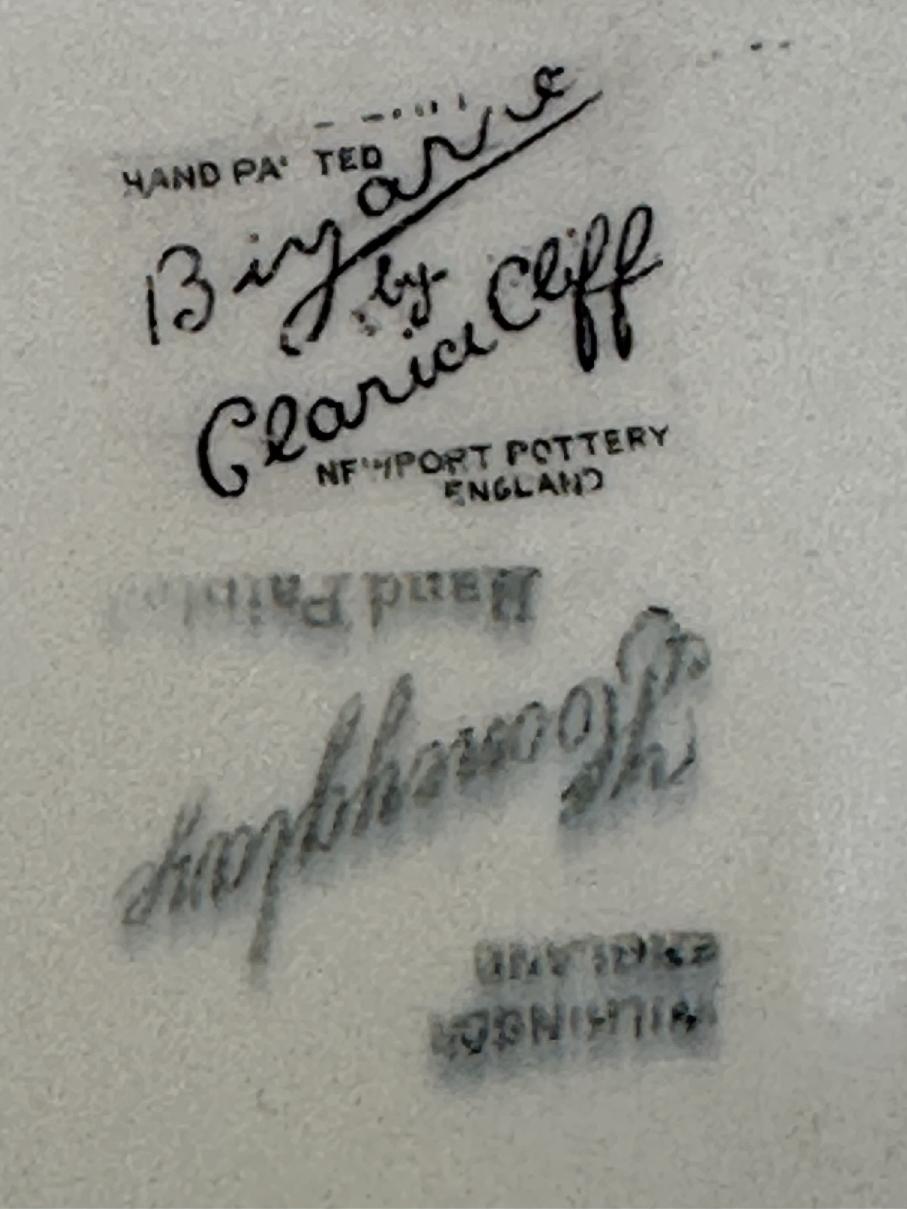 Stamped Bizarre by Clarice Cliff to the base of the plate.