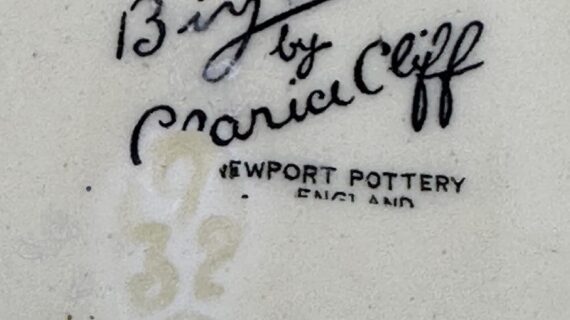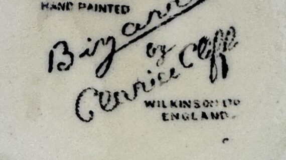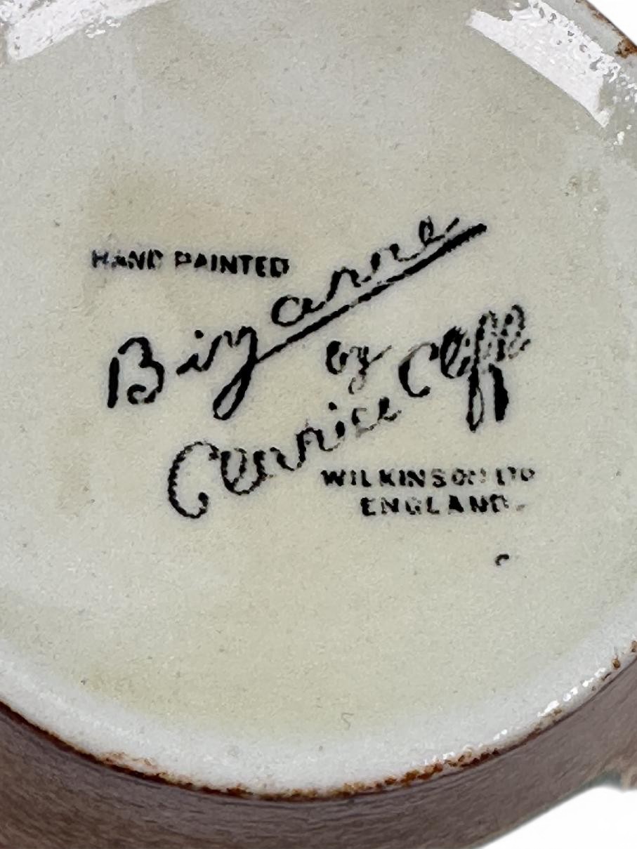 Both pieces are stamped Bizarre by Clarice Cliff to their bases.