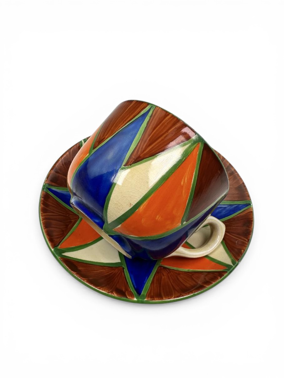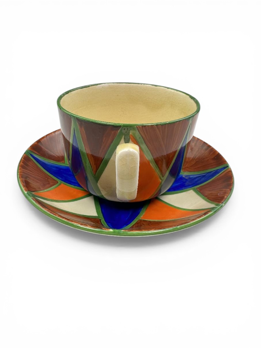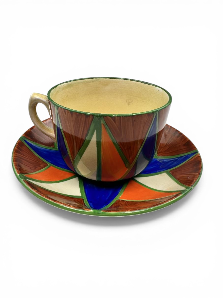 Original Bizarre (OB) tea cup & saucer, circa 1928.