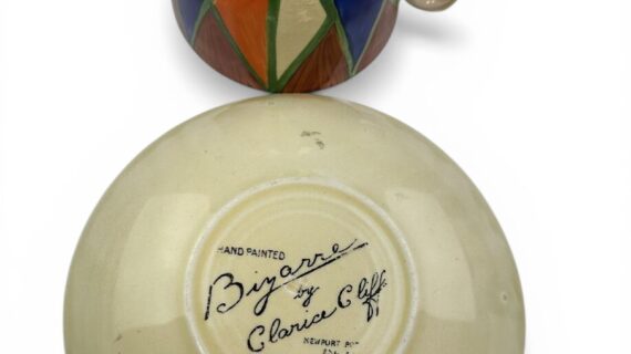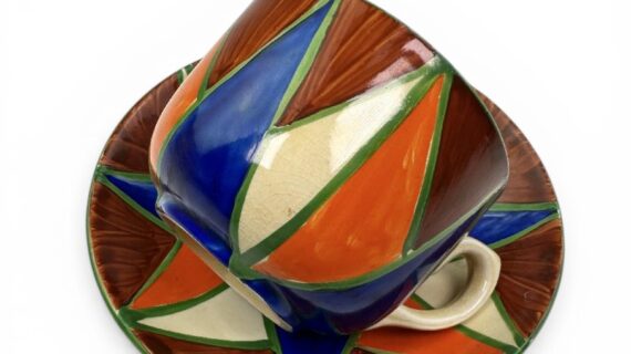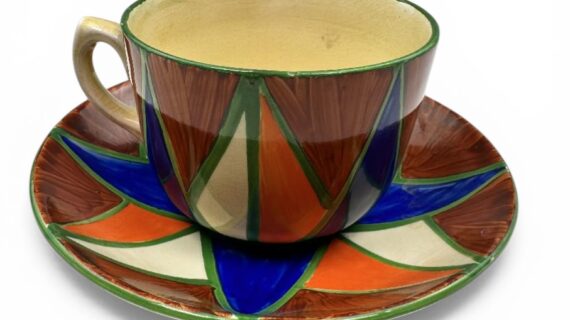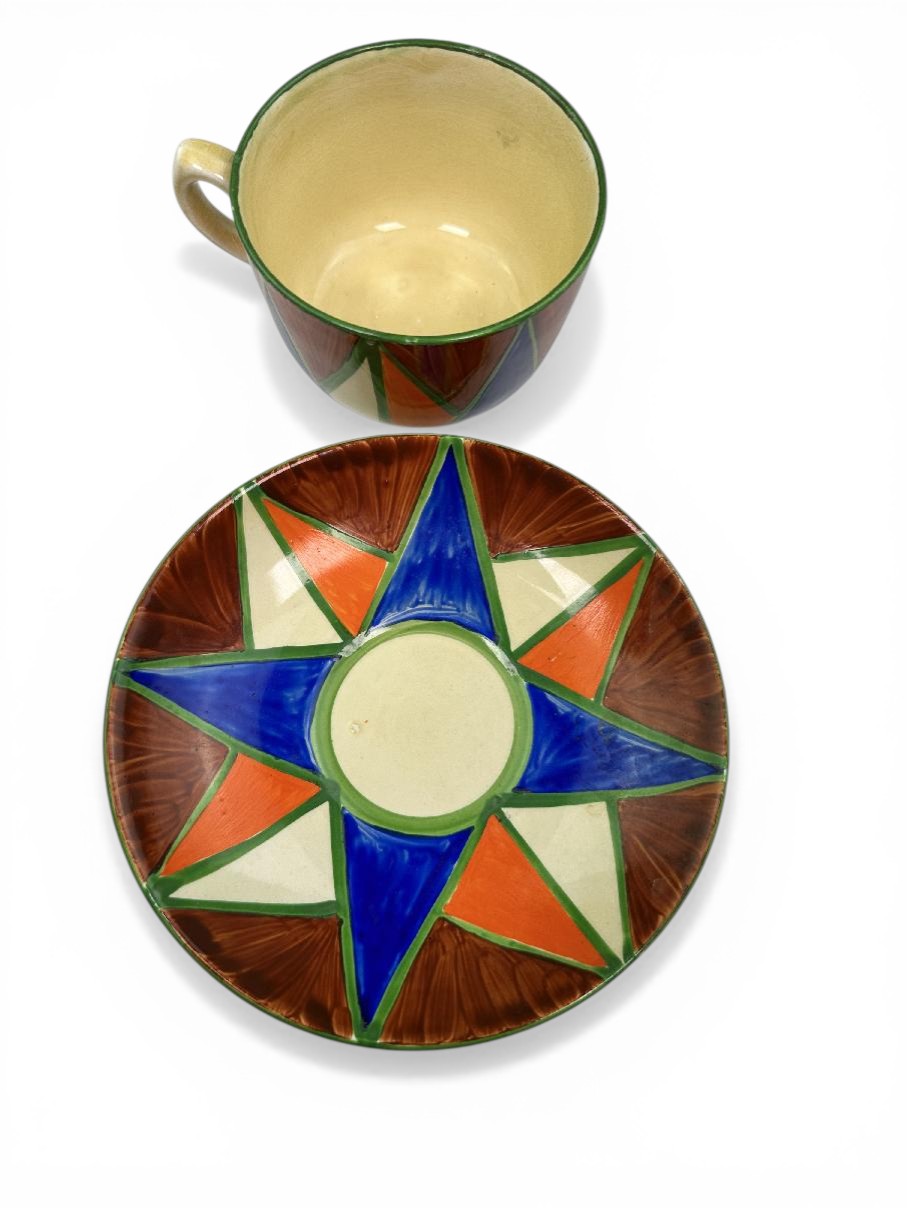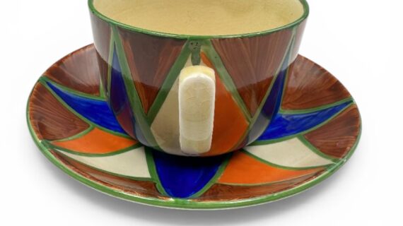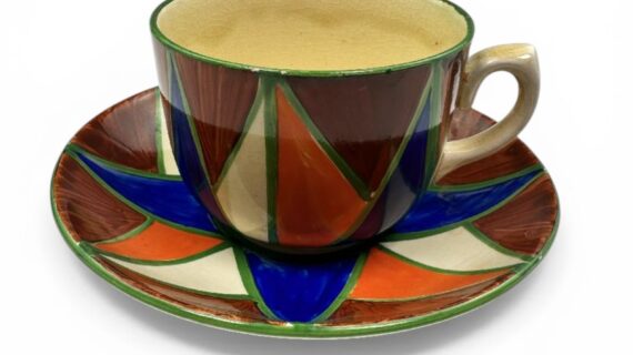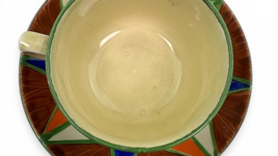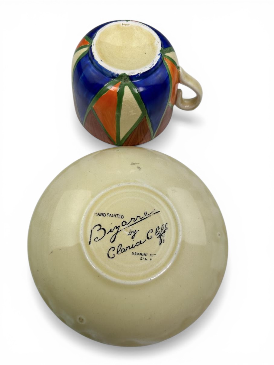 Original Bizarre (OB) tea cup & saucer, circa 1928.