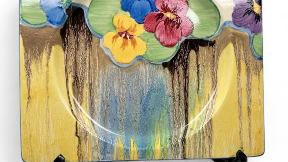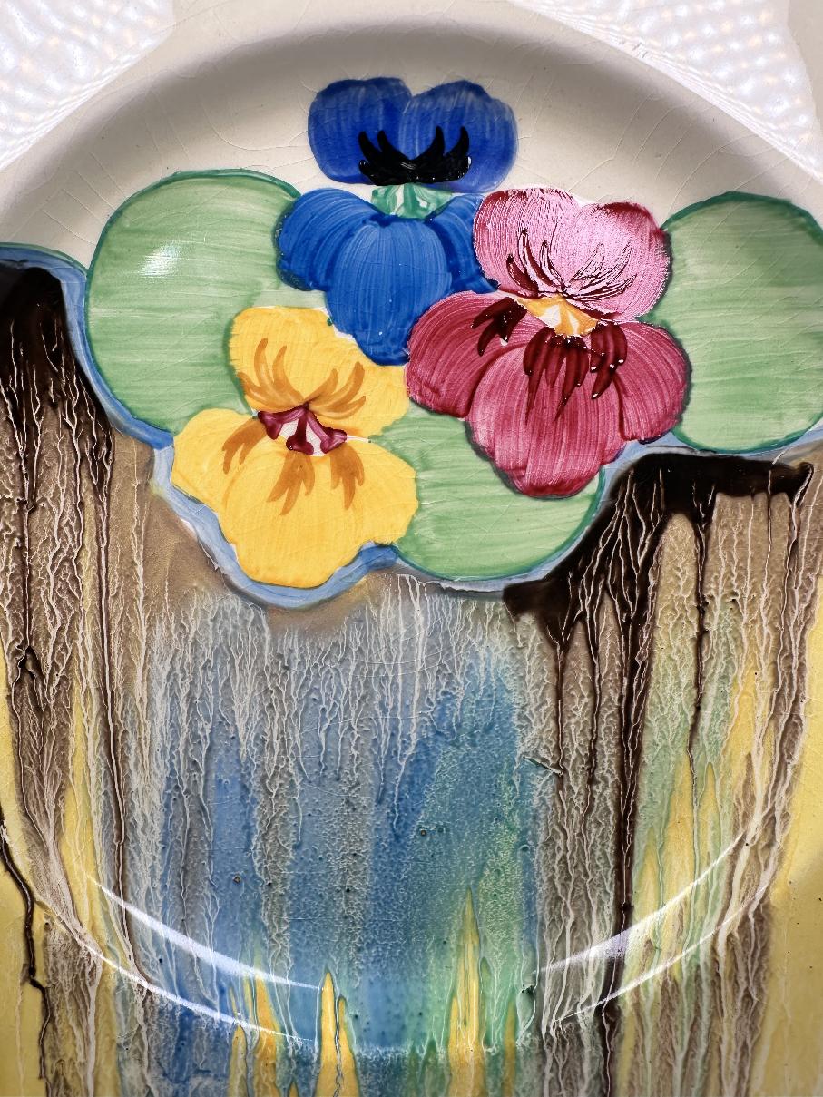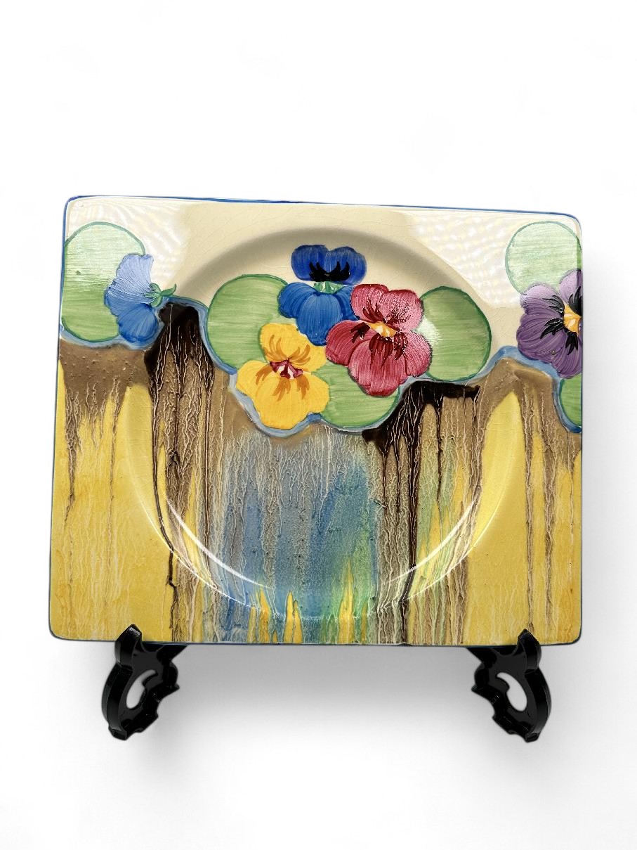 Clarice Cliff PANSIES medium size Biarritz shape plate.