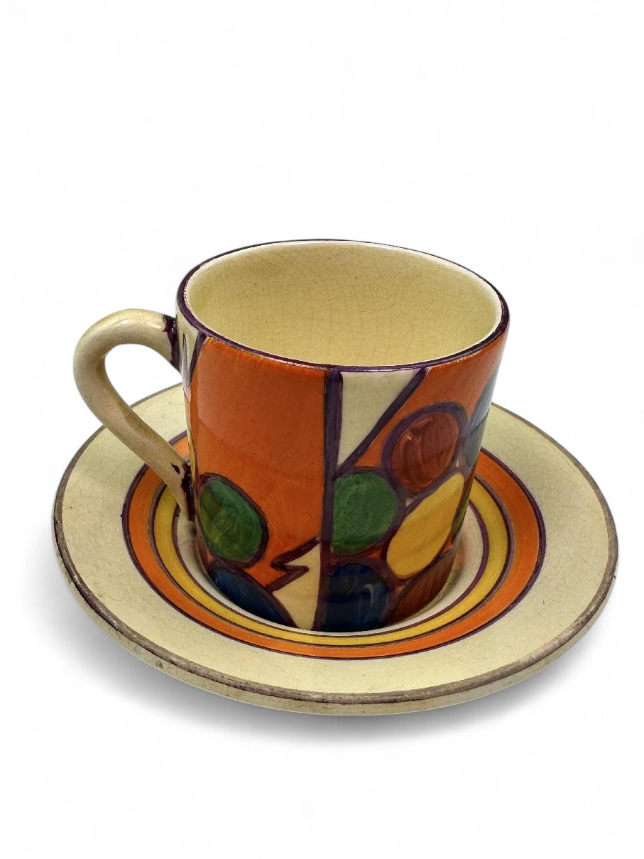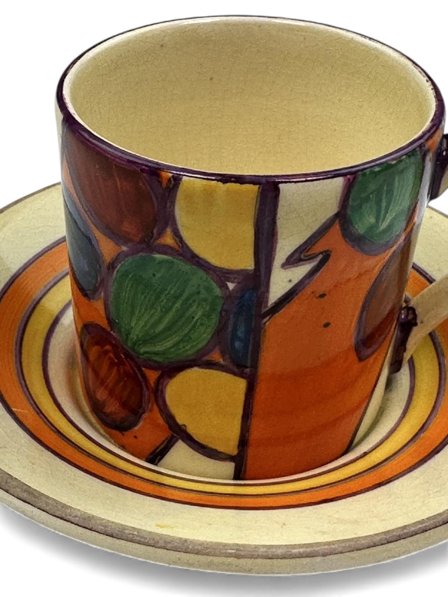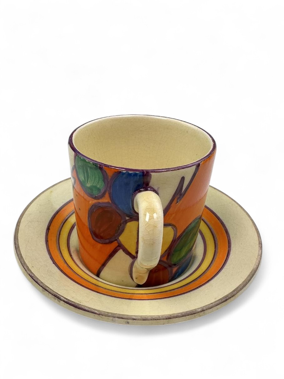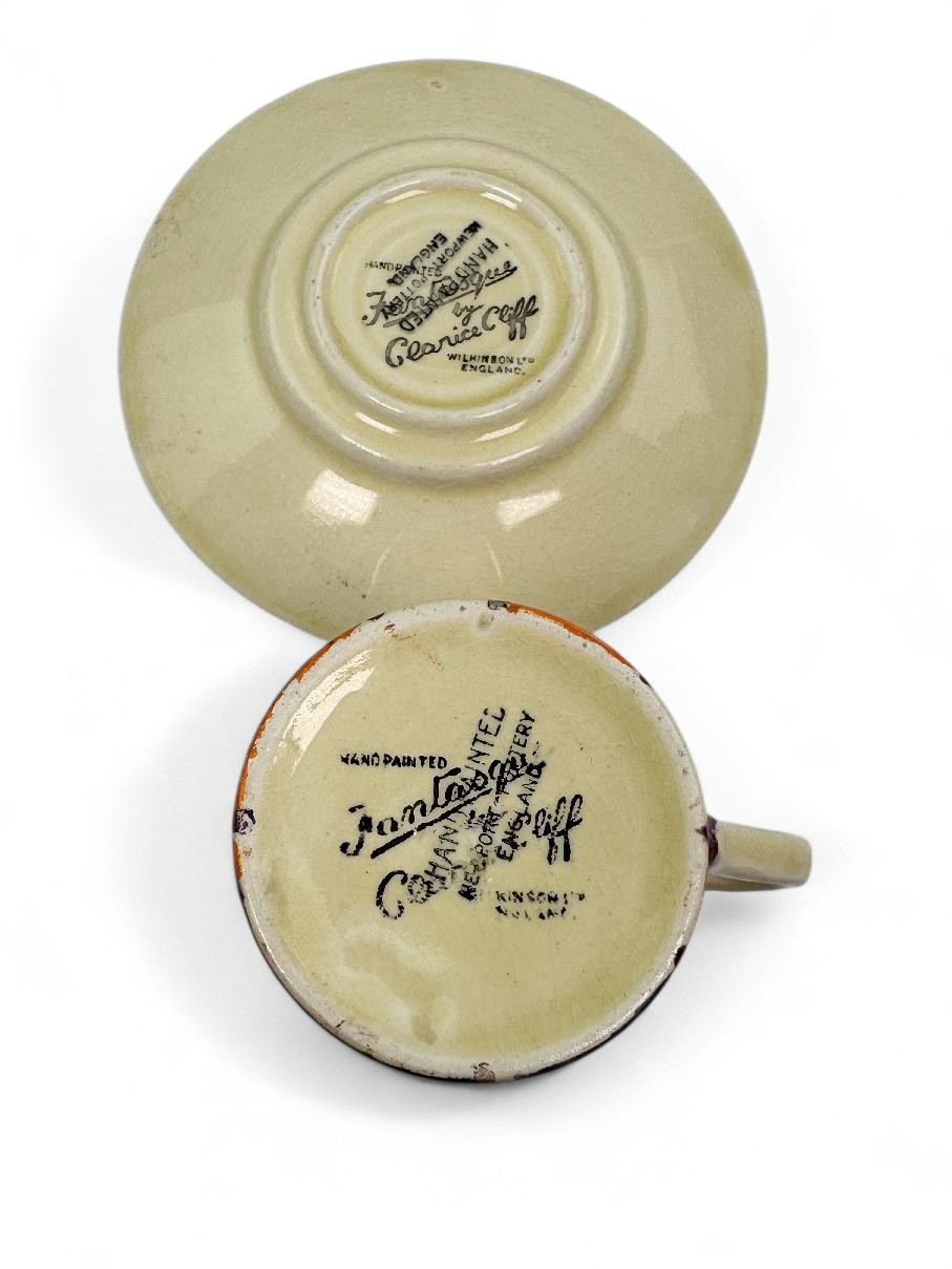 Stamped Fantasque by Clarice Cliff to the base of the cup and the saucer.