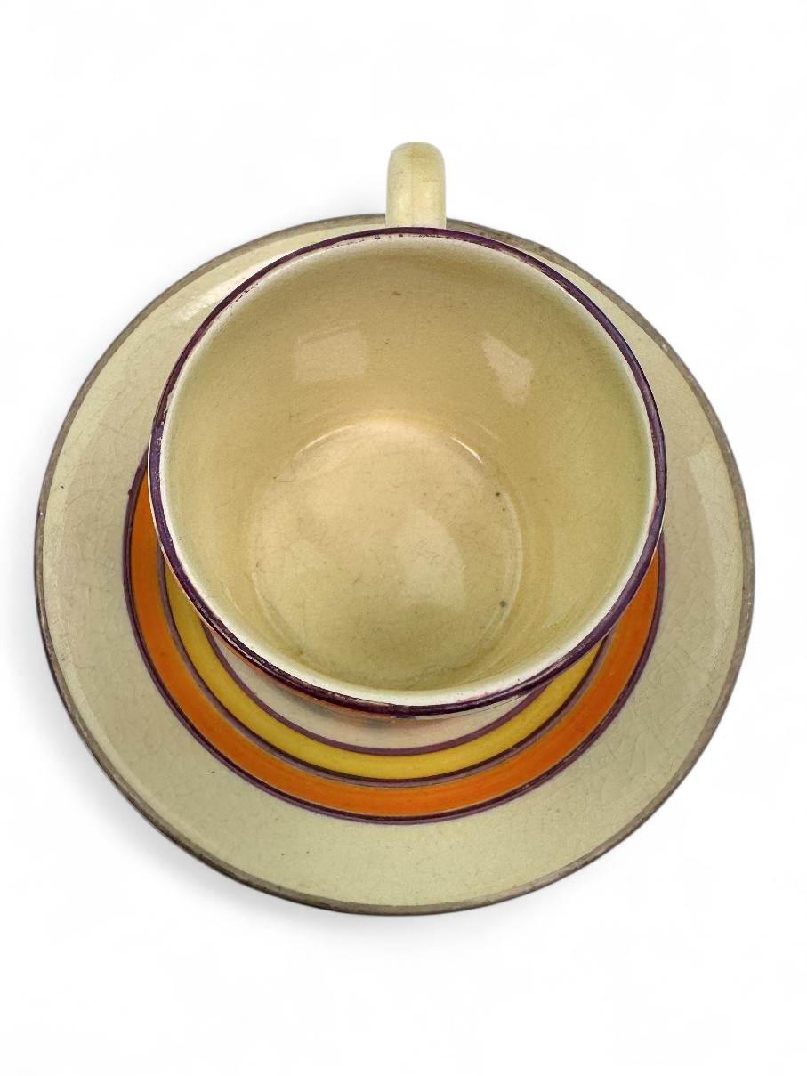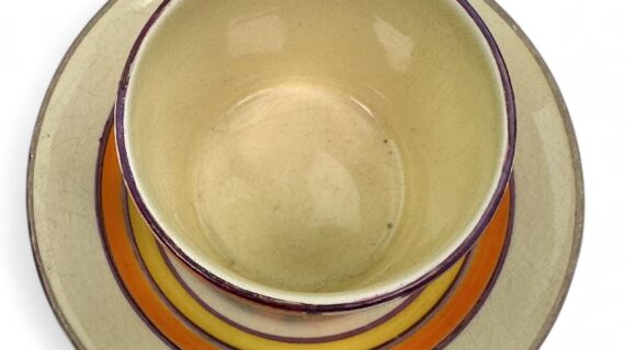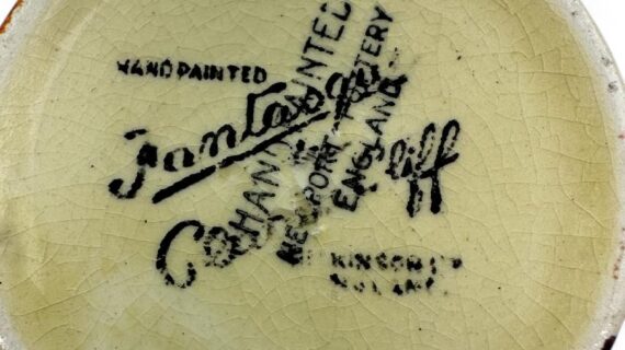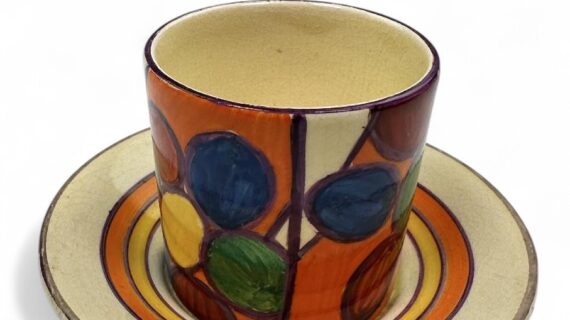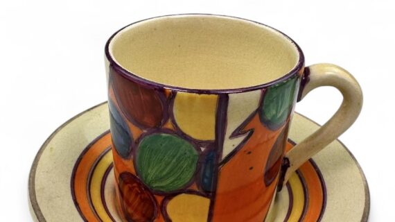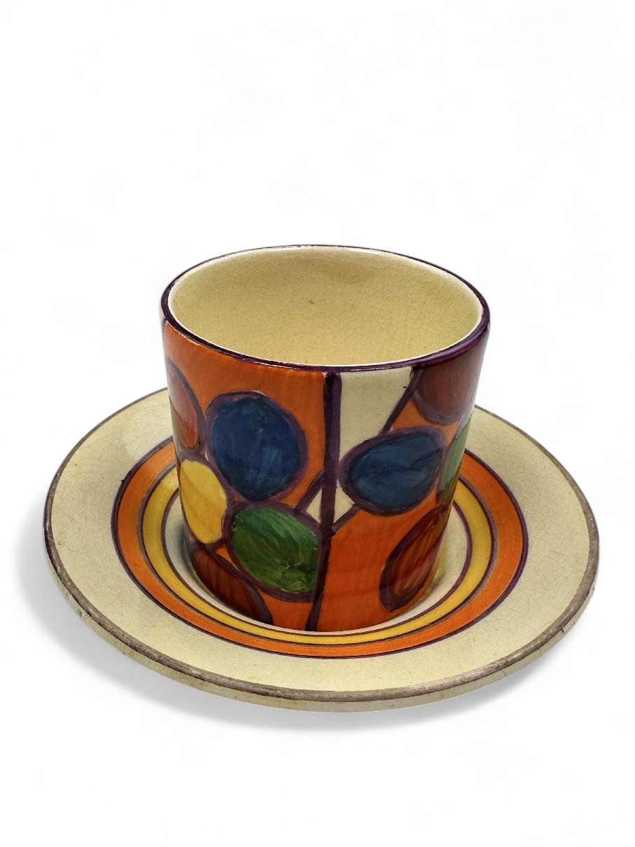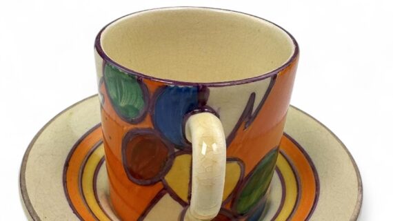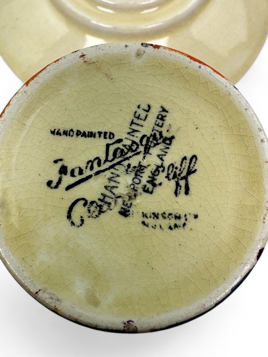 Stamped Fantasque by Clarice Cliff to the base of the cup and the saucer.