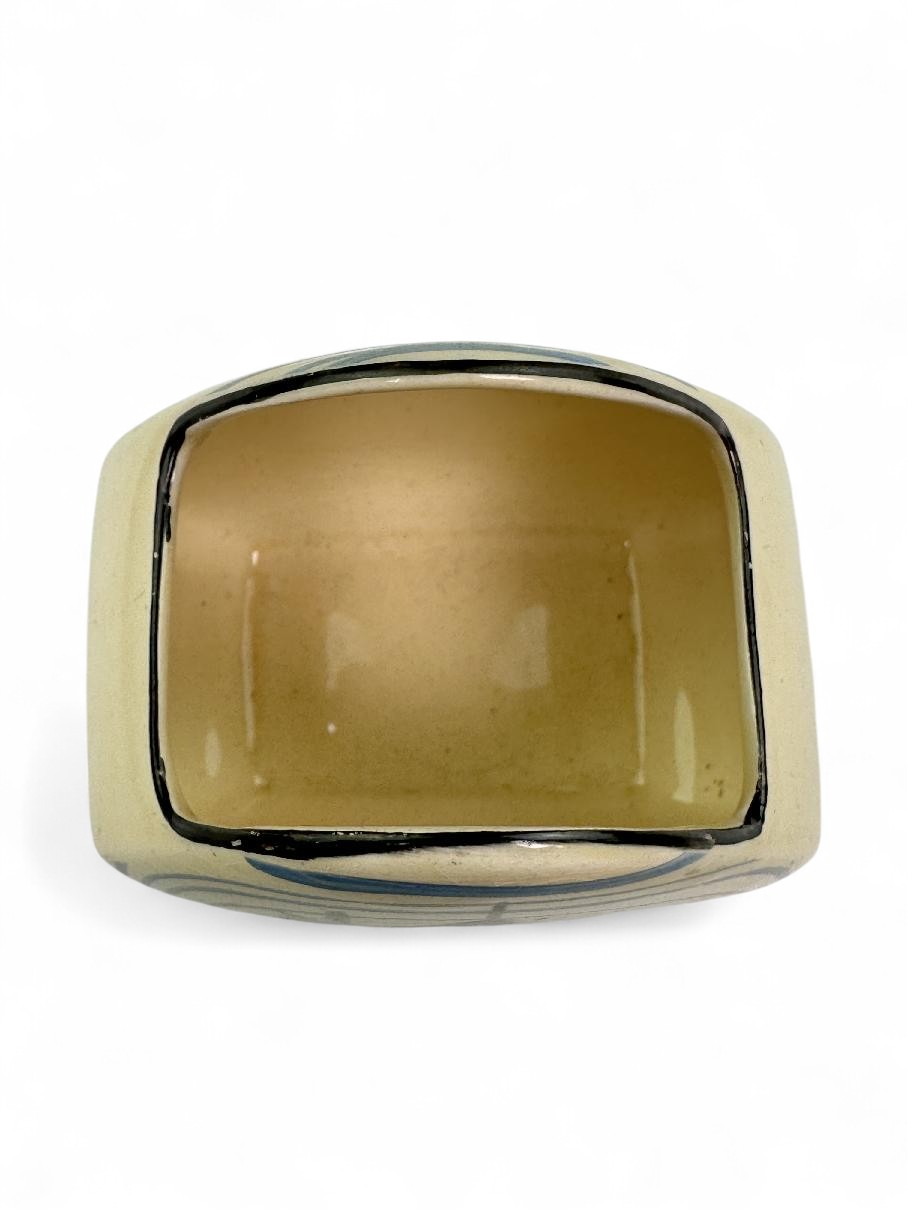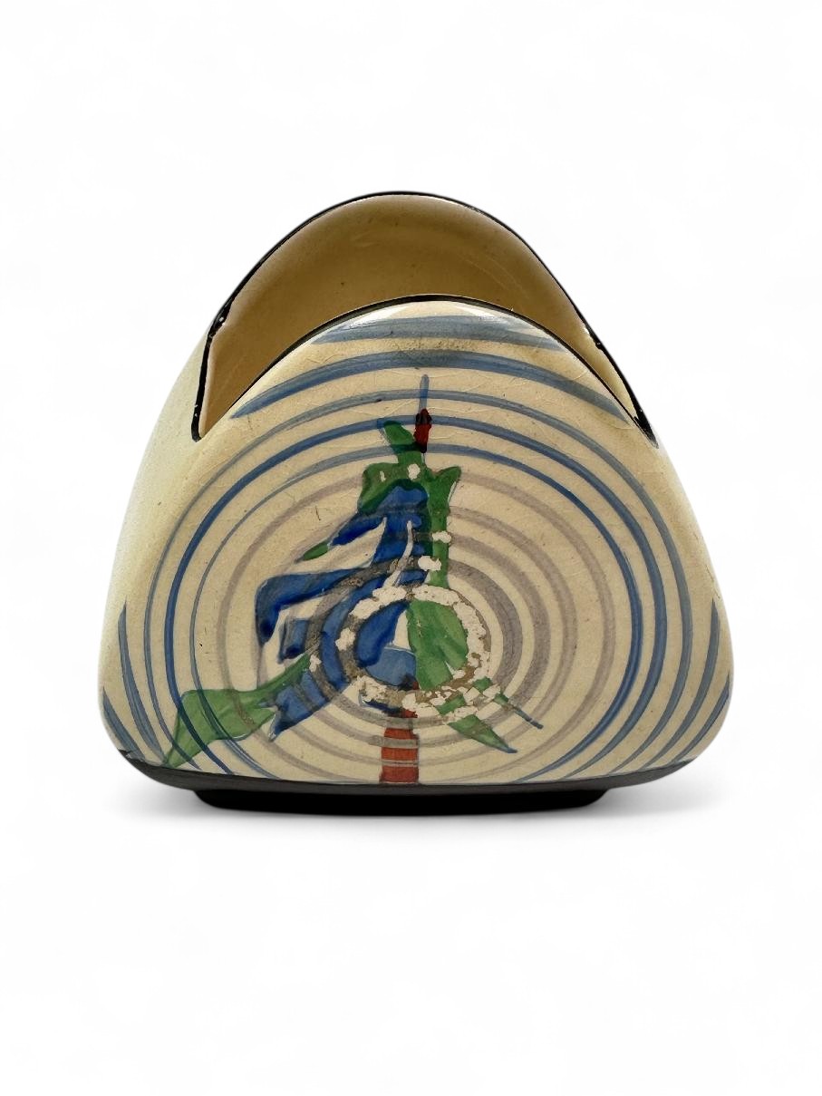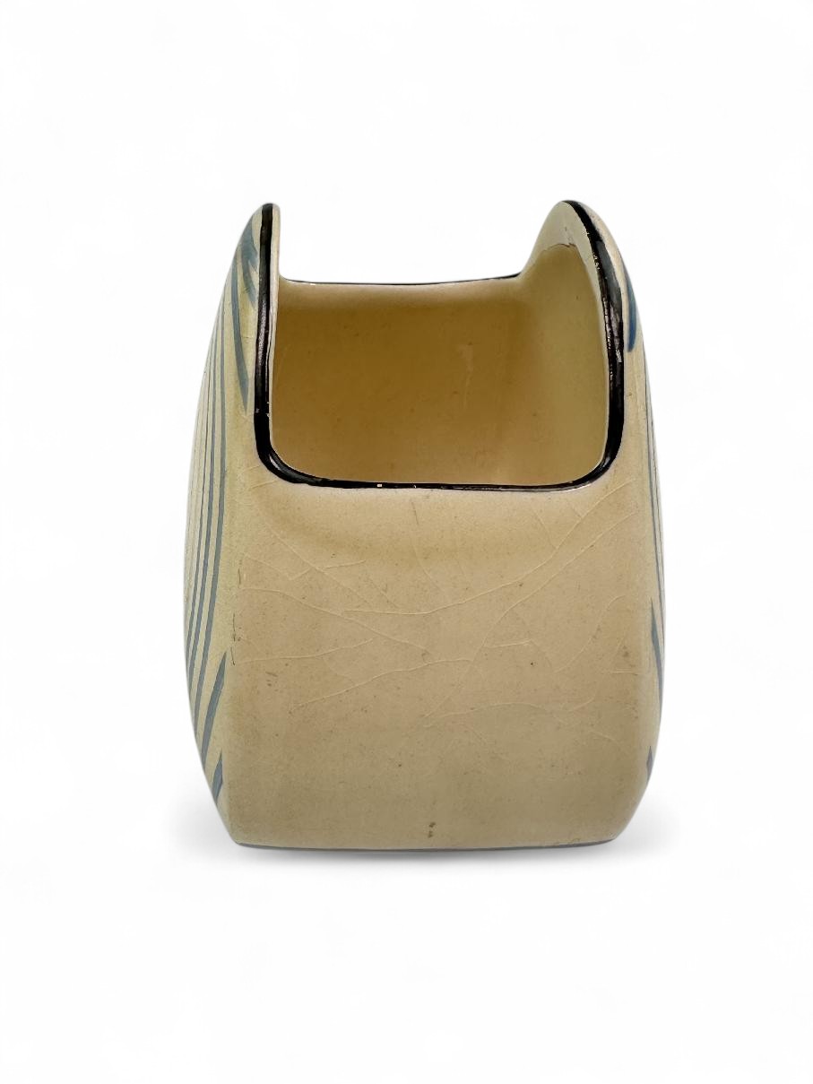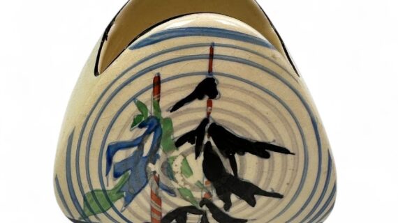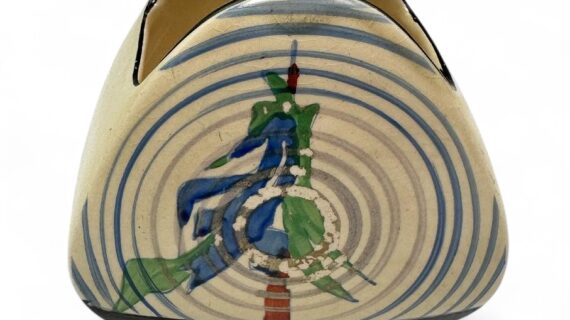 Probably one of Clarice’s last great patterns from the 1930s, Pinegrove is still popular with collectors and not often seen these days. This is a Trieste shape sugar bowl from a Trieste tea set.