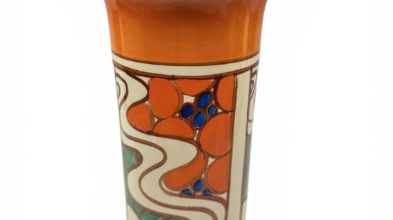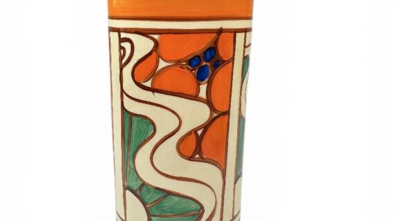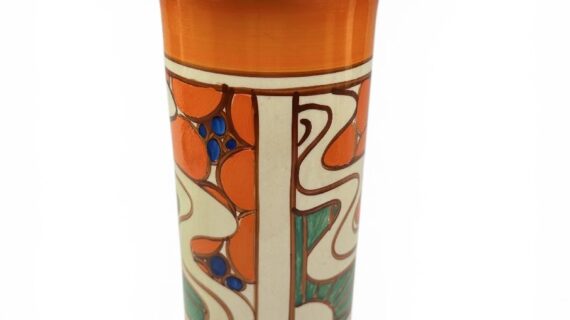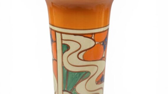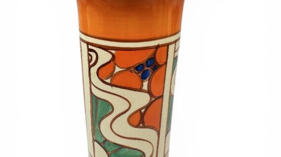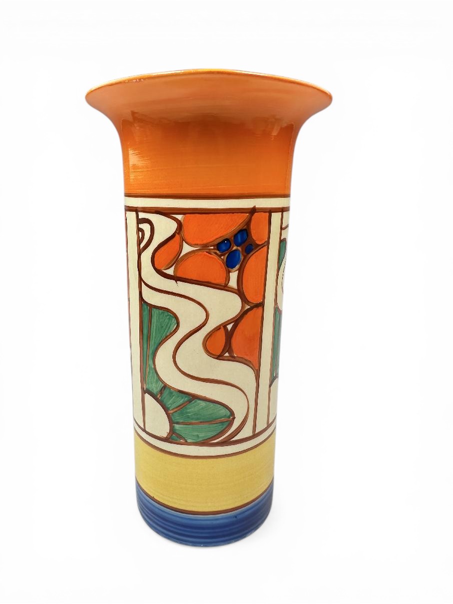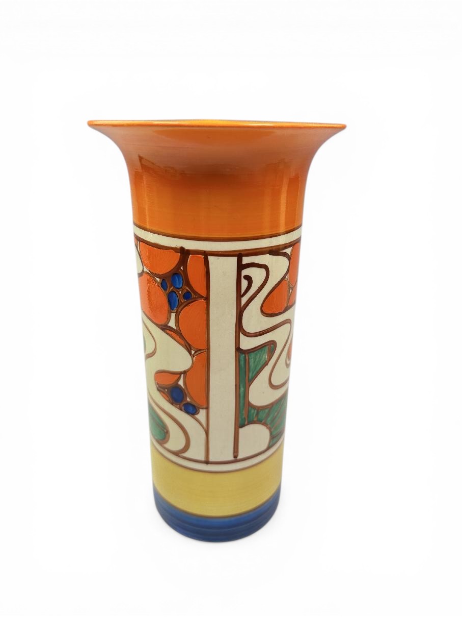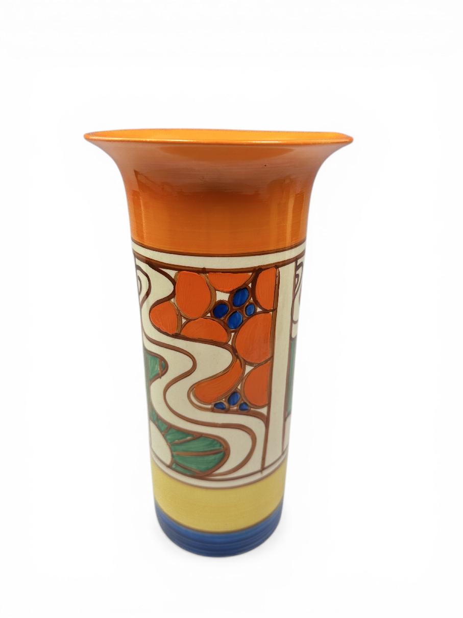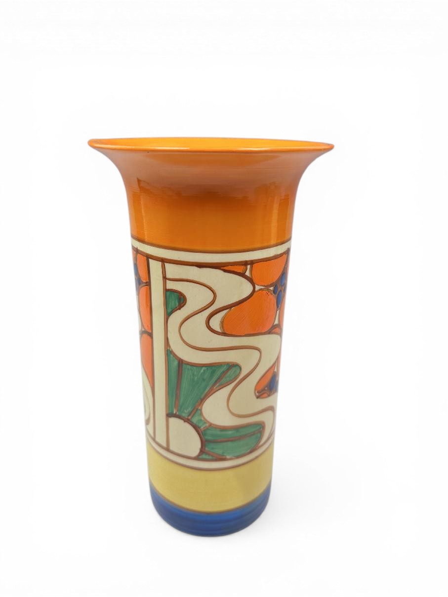 Clarice Cliff SUNRISE shape 195 ‘sleeve’ vase, circa 1929, 22cm.