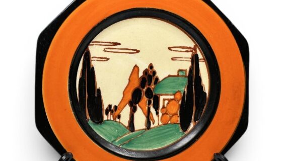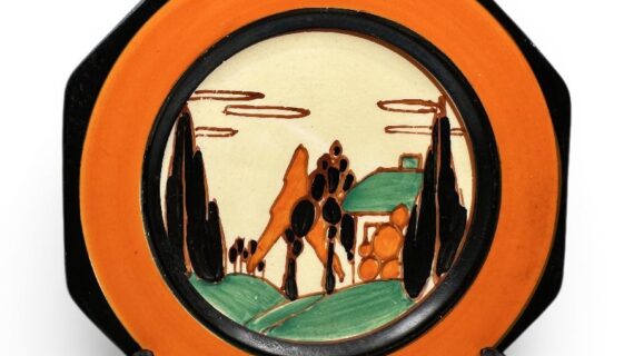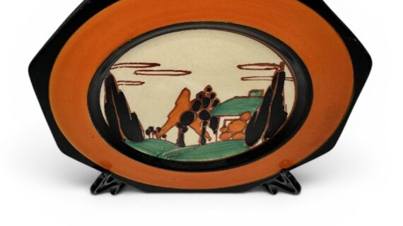 This attractive early landscape pattern is arguabley one of Clarice’s best and a definite ‘must-have’ in your CC collection. Strongly decorated with bold banding around the central pattern.