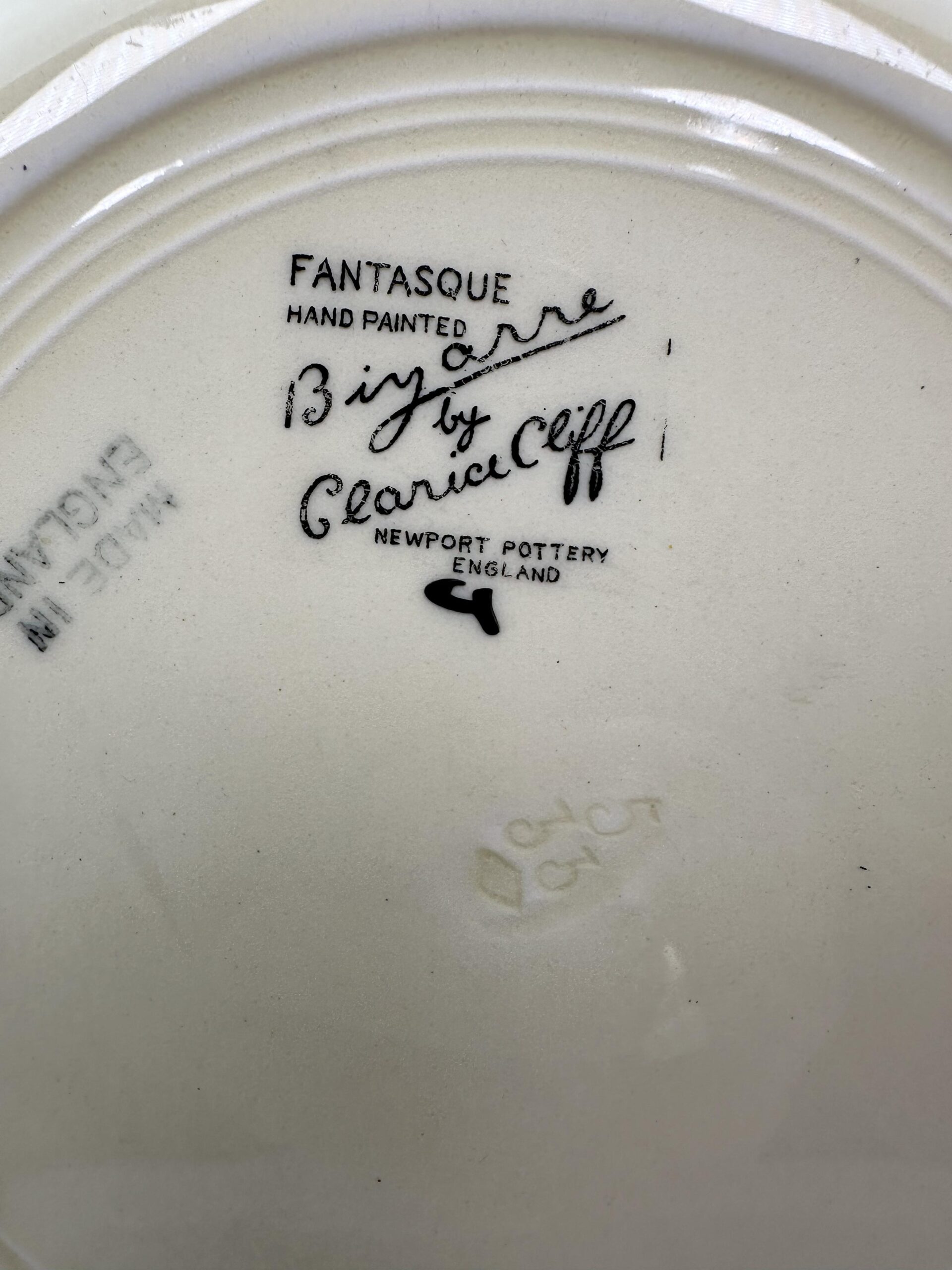 The usual Clarice Cliff Bizarre marks.
