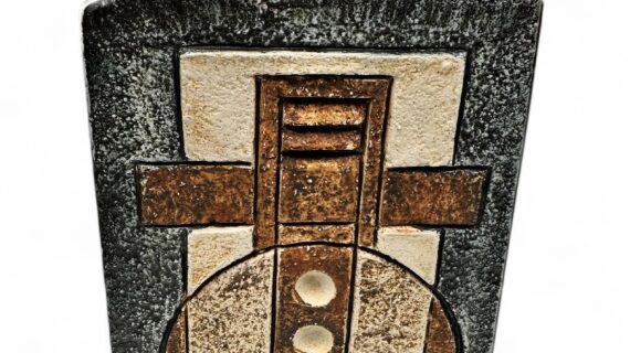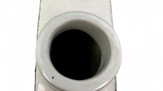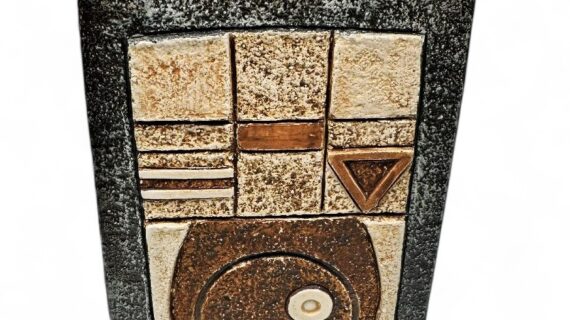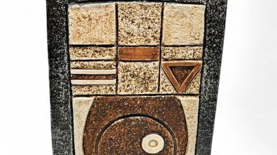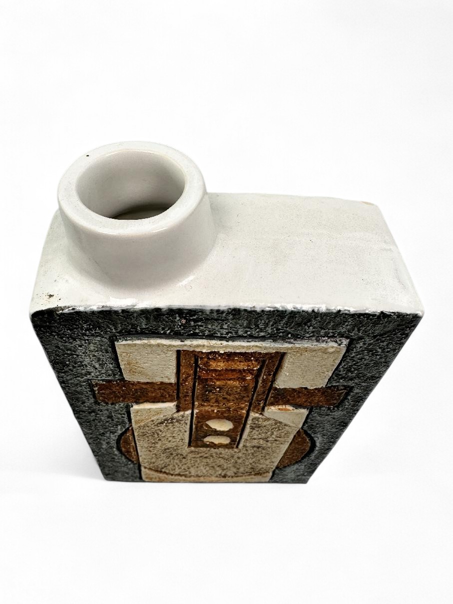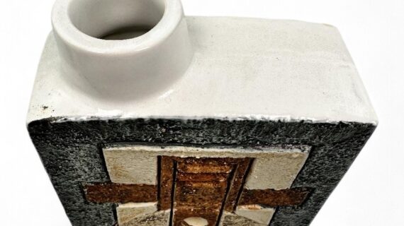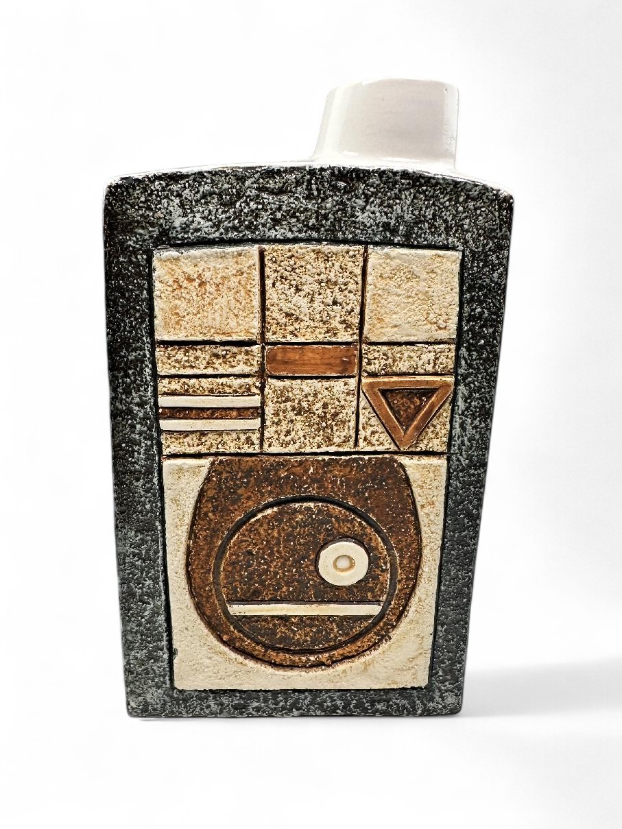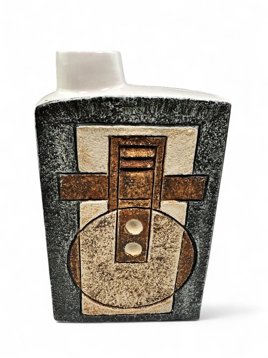 Troika chimney vase by Tina Doubleday. White-glazed edge. Abstract pattern to both sides.