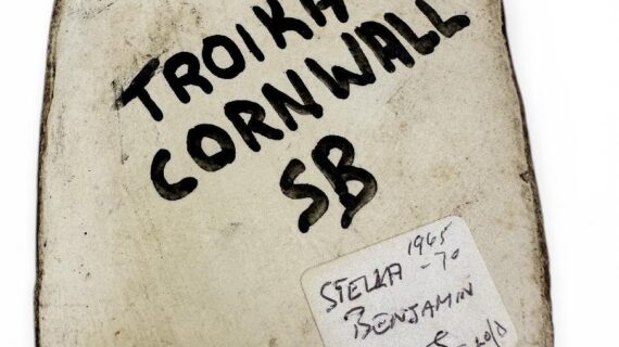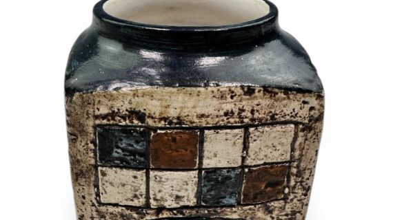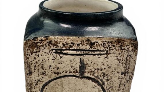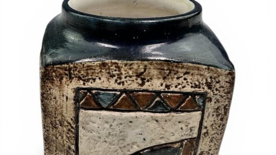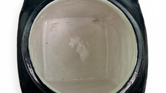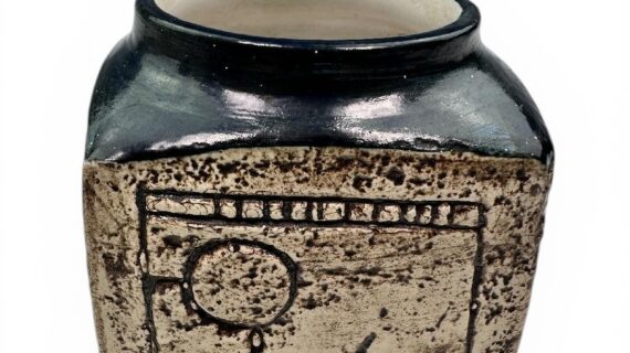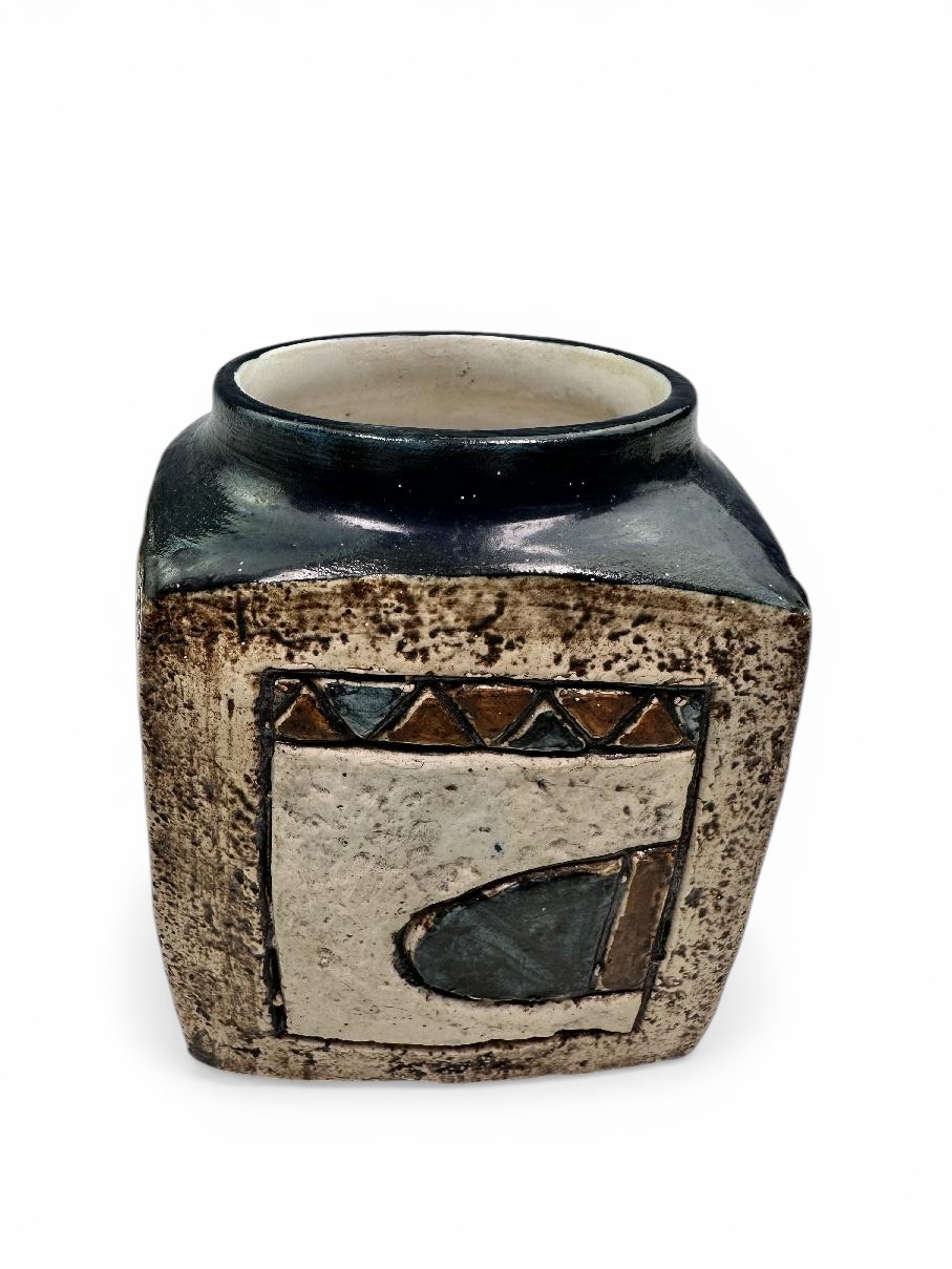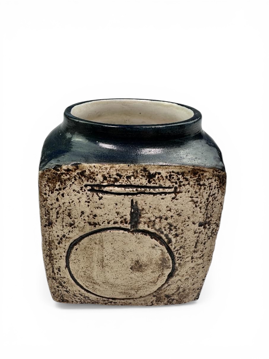 Troika marmalade pot with black glazed top, 9cm, by Sally Bart.