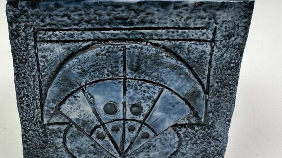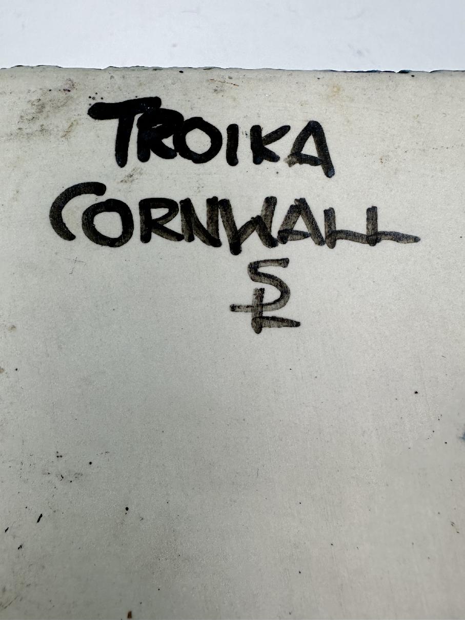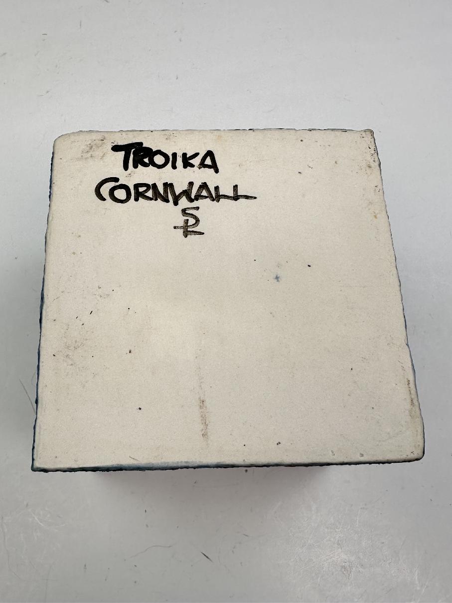 Handwritten Troika mark and decorator’s monogram (SL) to the base. Height is 8.5cm.