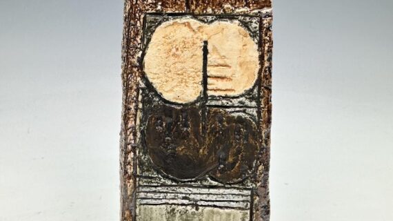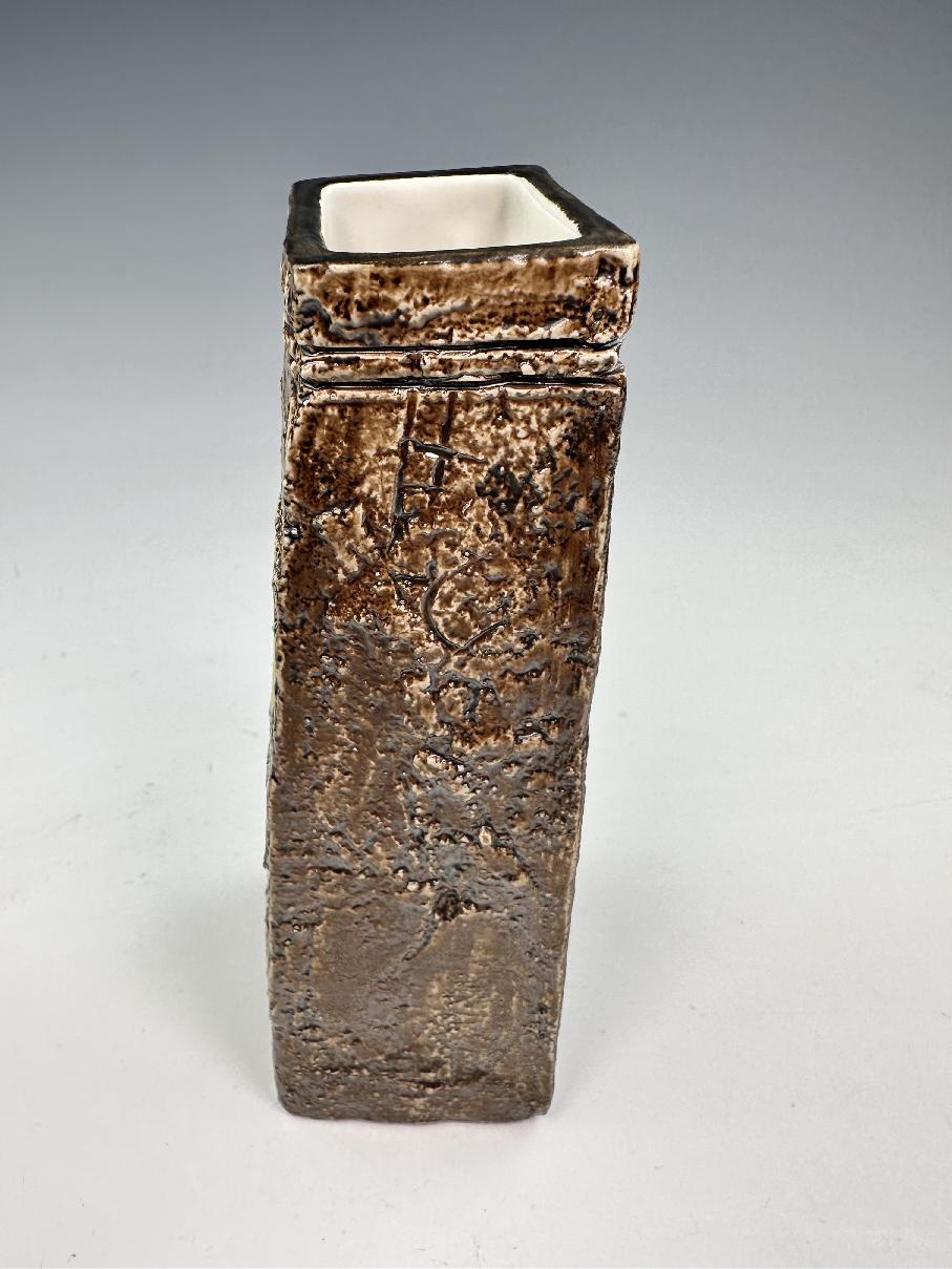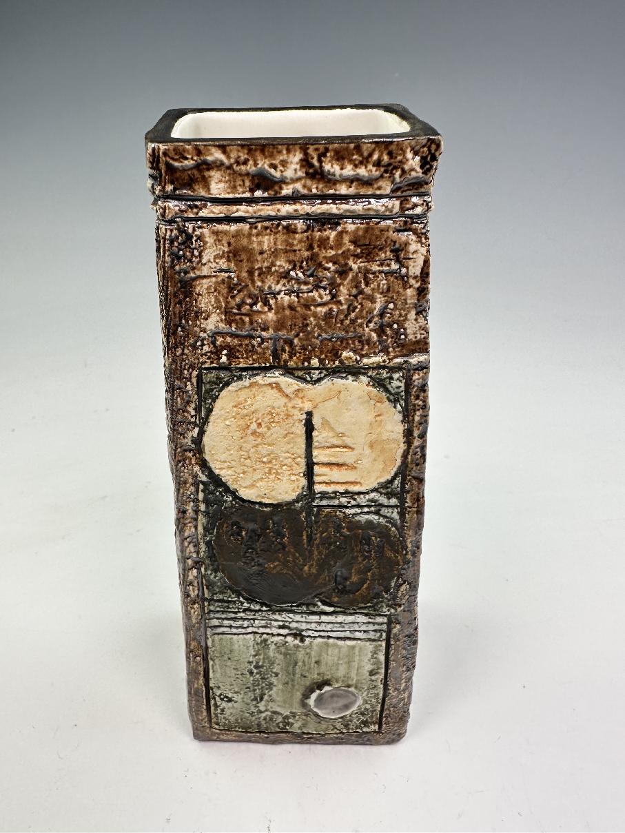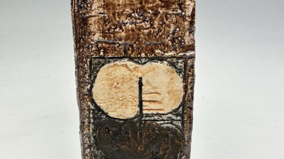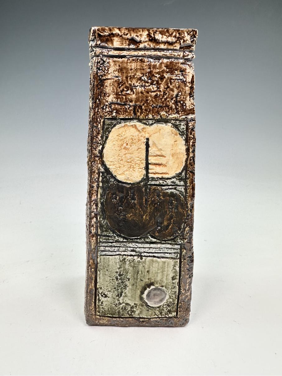 Troika coffin vase with abstract designs, circa 1970s with rare ‘shiny’ glaze.