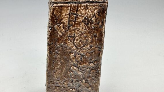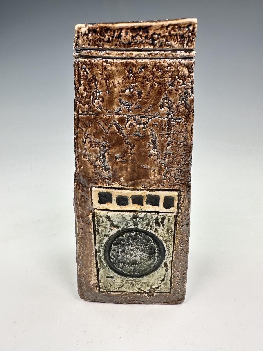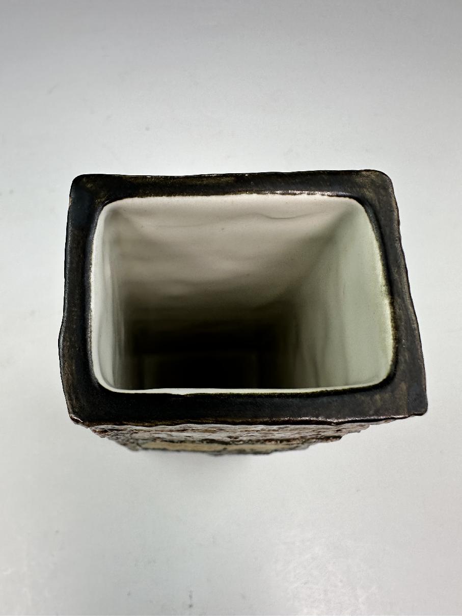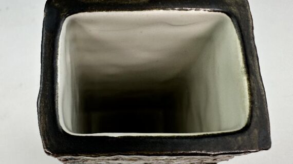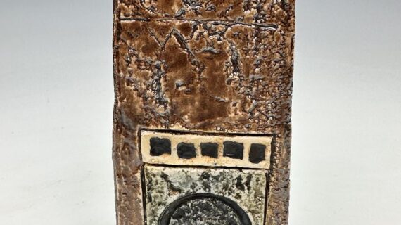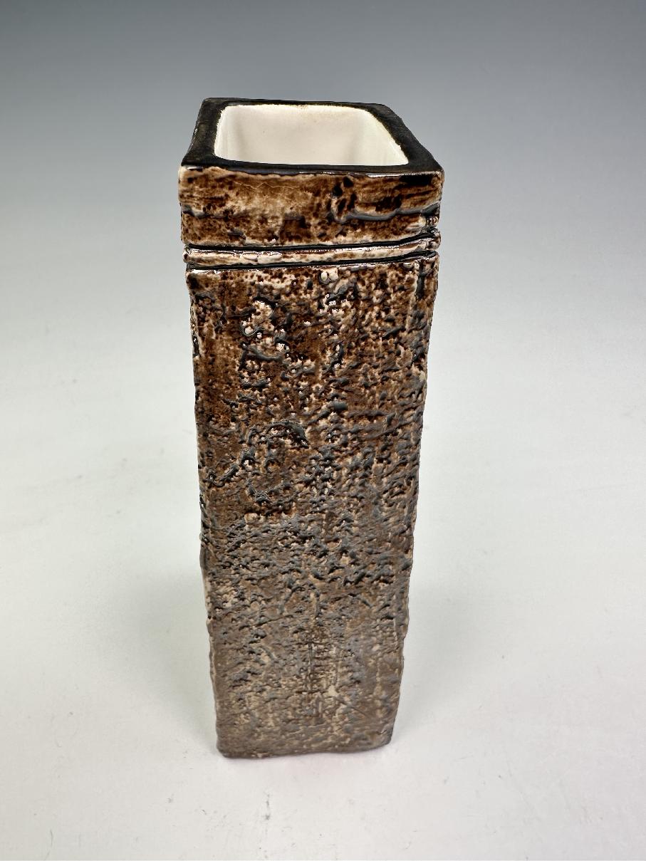 Troika coffin vase with abstract designs, circa 1970s with rare ‘shiny’ glaze.