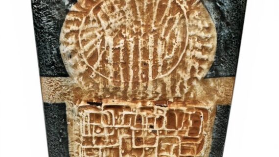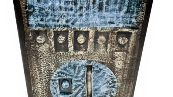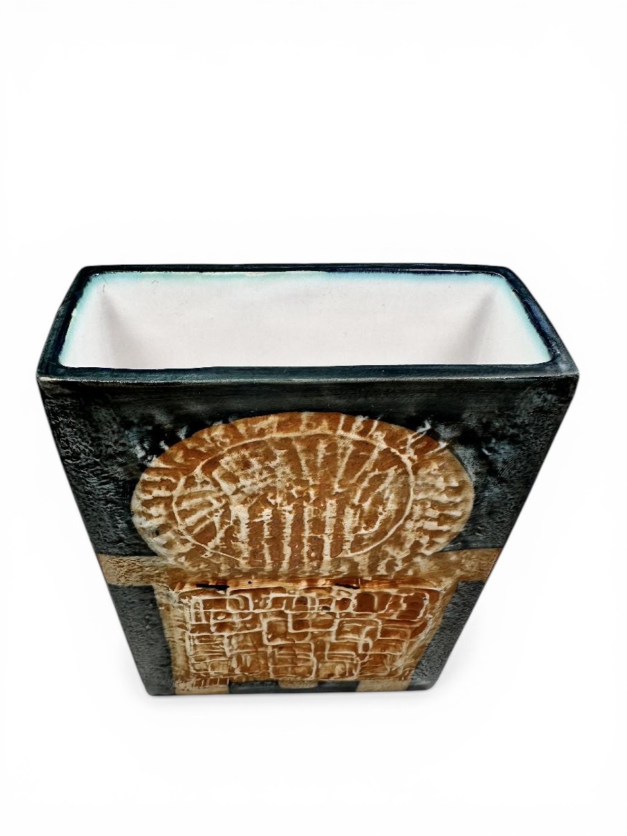 Troika Stove Man slab vase by Sylvia Vallence, circa 1960s/70s. 17.5cm high.