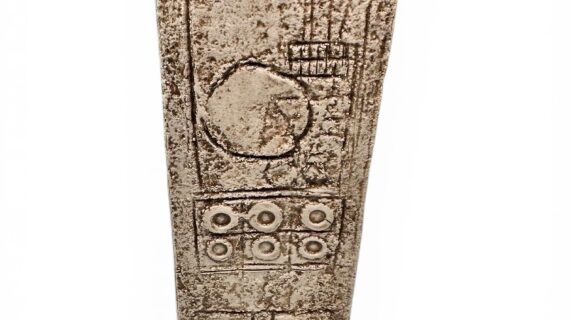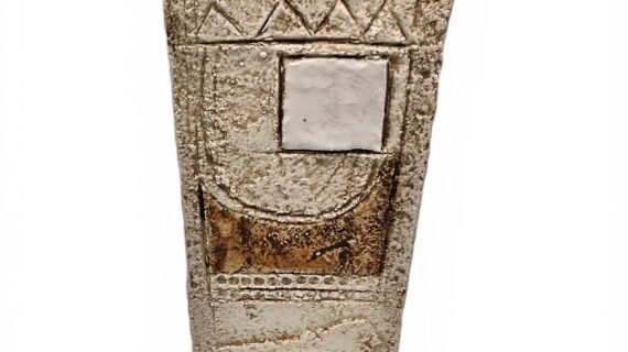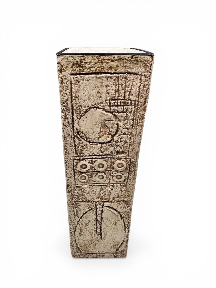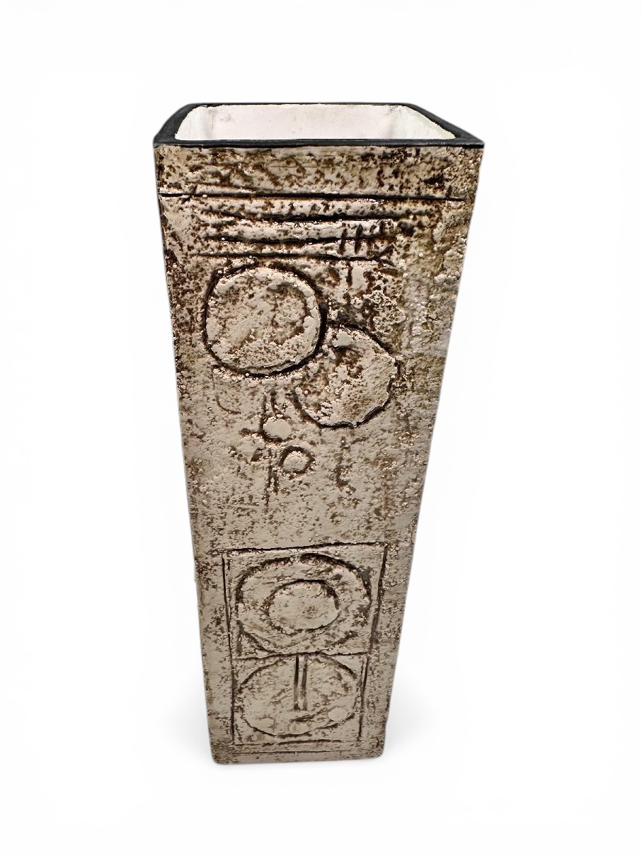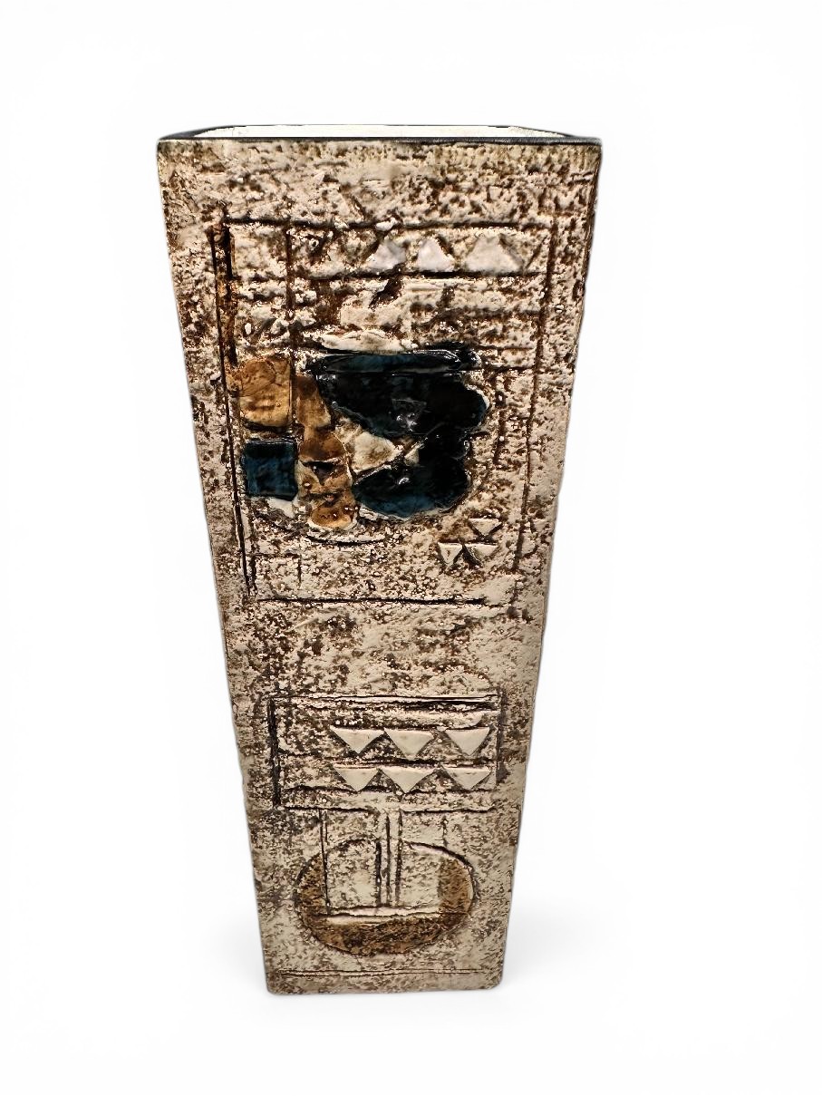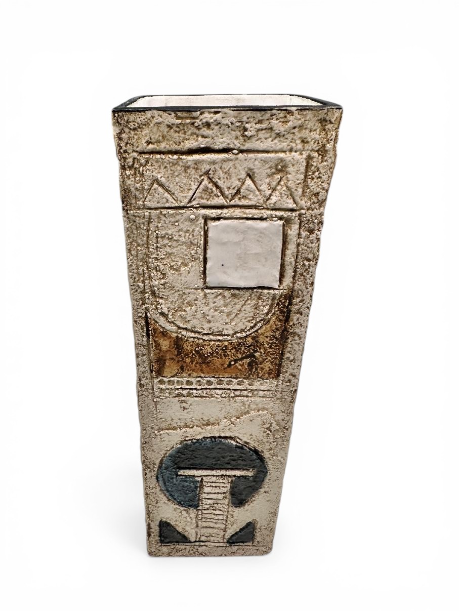 Troika tall cuboid slab vase by Linda Taylor, 22cm.