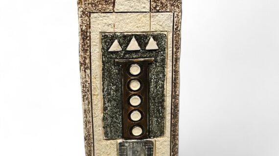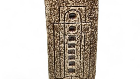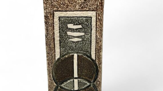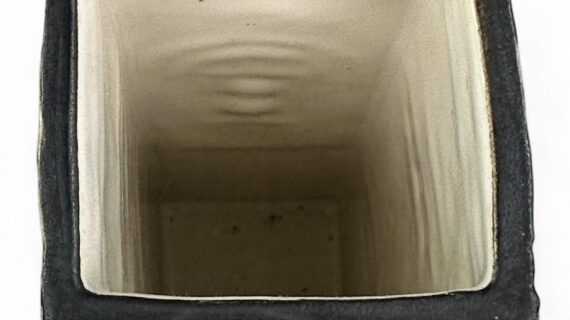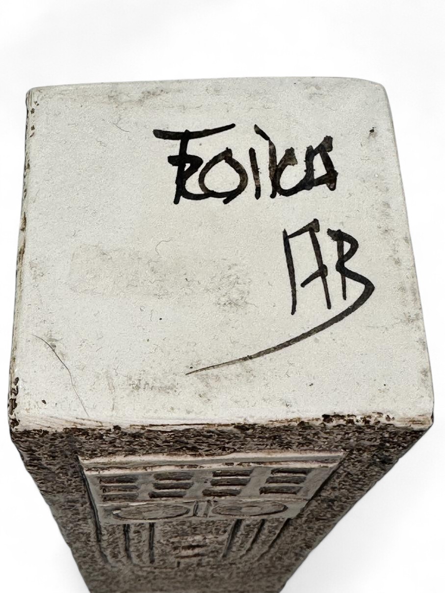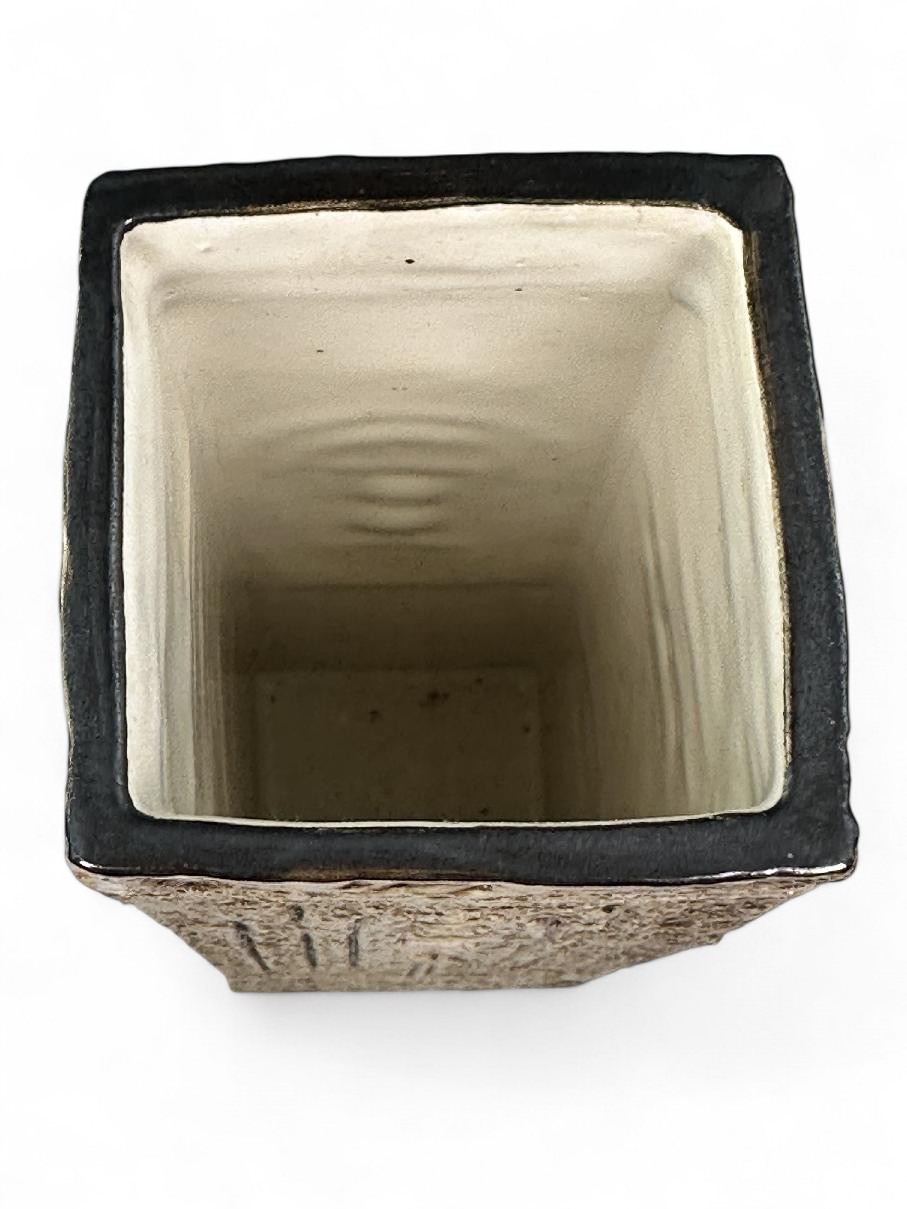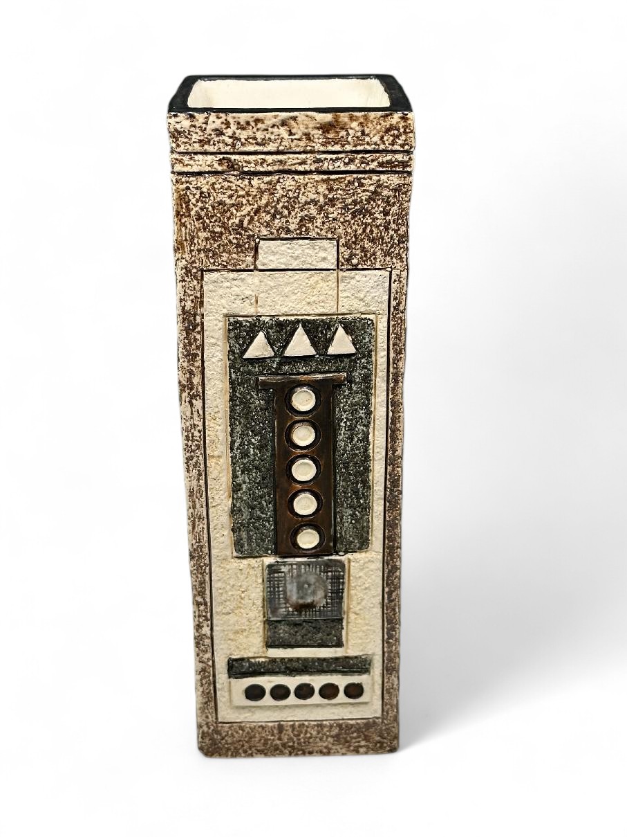 TROIKA tall square vase with abstract designs, decorated by Alison Brigden.