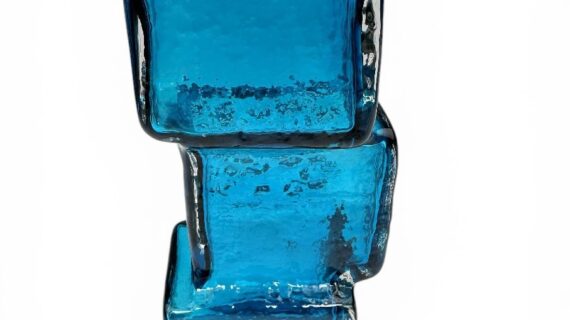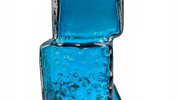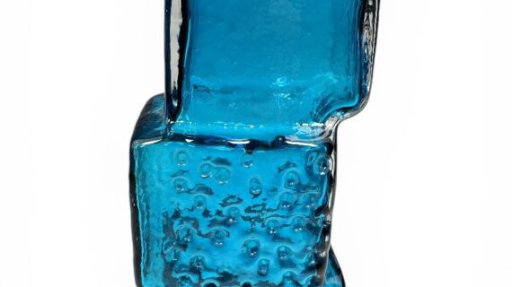 WHITEFRIARS Drunken Bricklayer vase, designed by Geoffrey Baxter, Kingfisher Blue.