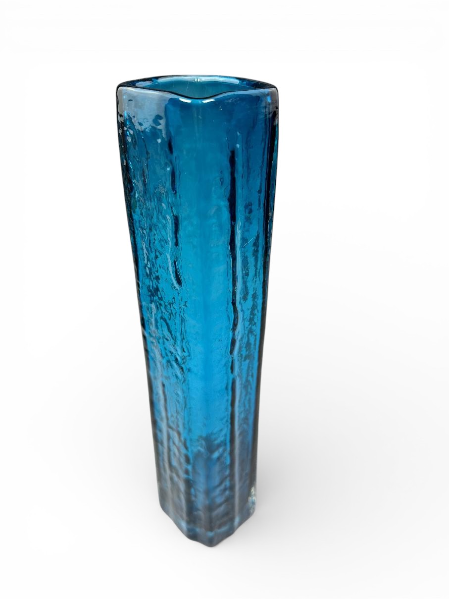 WHITEFRIARS kingfisher blue CUCUMBER shape vase by Geoffrey Baxter.