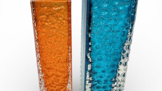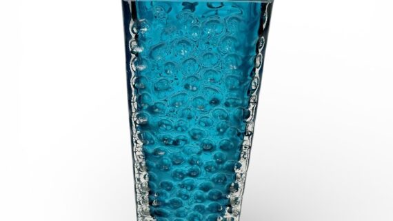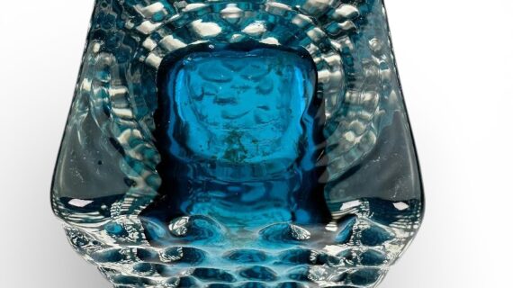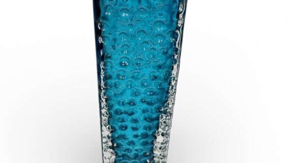 WHITEFRIARS Kingfisher (blue) LARGE Nailhead vase by Geoffrey Baxter (9808).