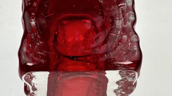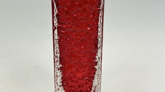WHITEFRIARS ruby (red) colour Nailhead vase by Geoffrey Baxter.