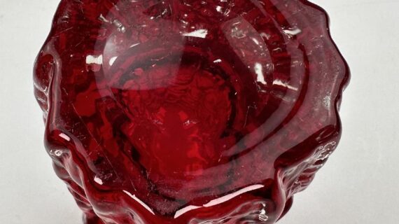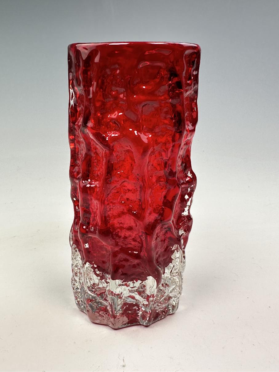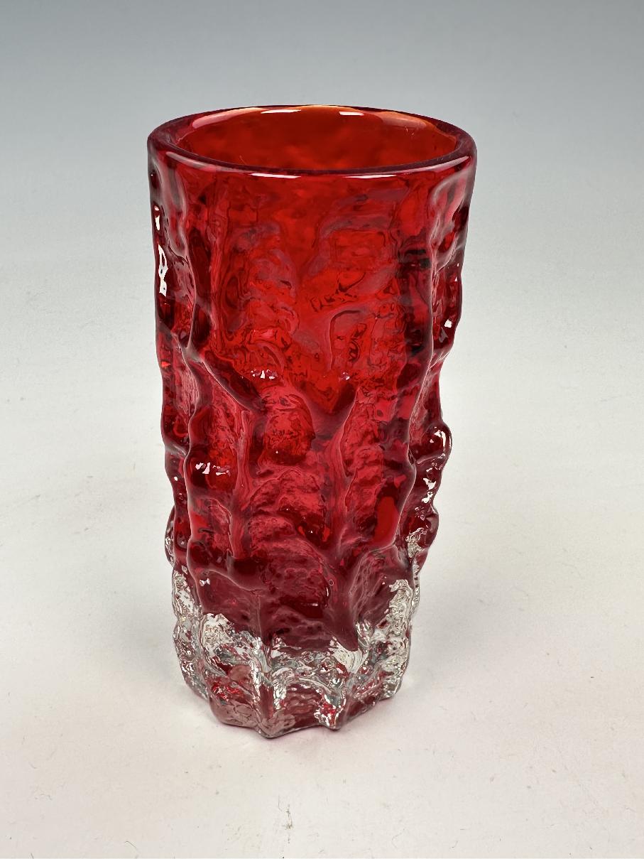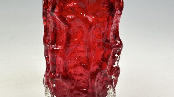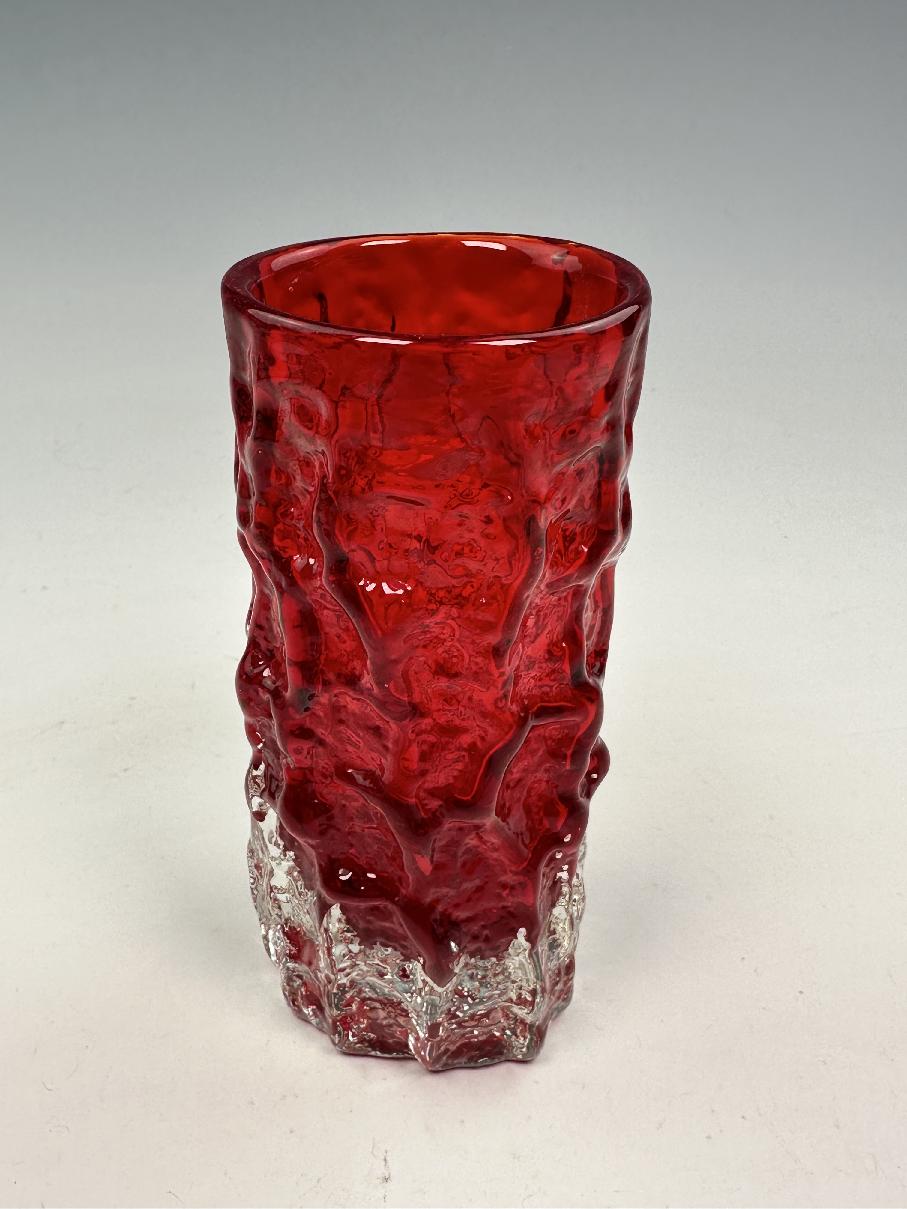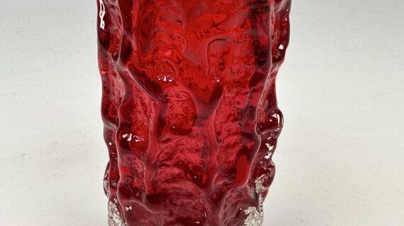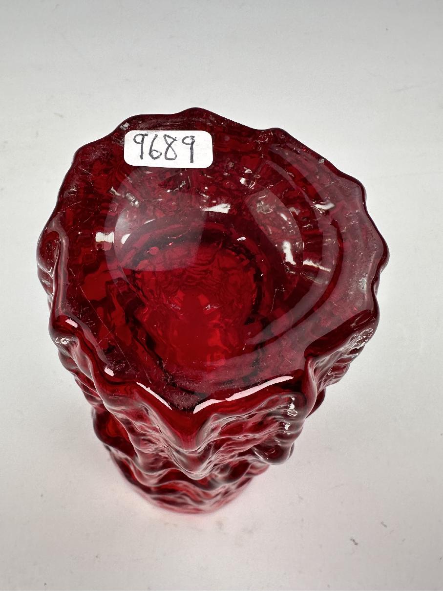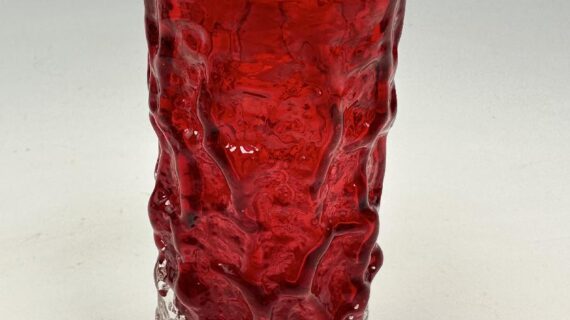 Whitefriars small size ruby red bark vase by Geoffrey Baxter – 6 Inches (15cm) high.