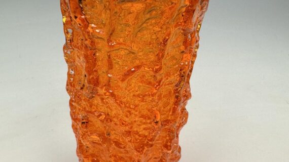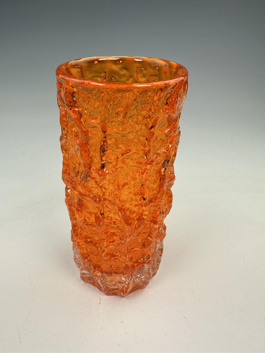 WHITEFRIARS TANGERINE (orange) bark vase by Geoffrey Baxter.
