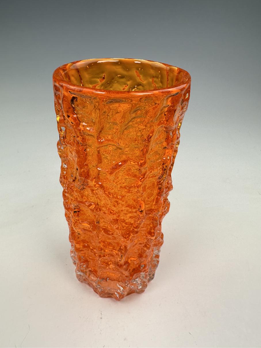 WHITEFRIARS TANGERINE bark vase by Geoffrey Baxter, 19cm, MEDIUM size. 1960s.