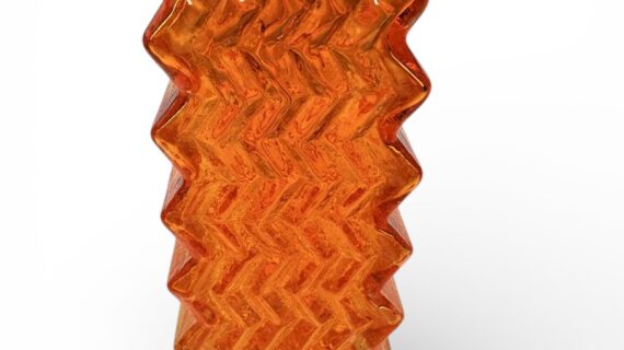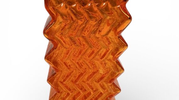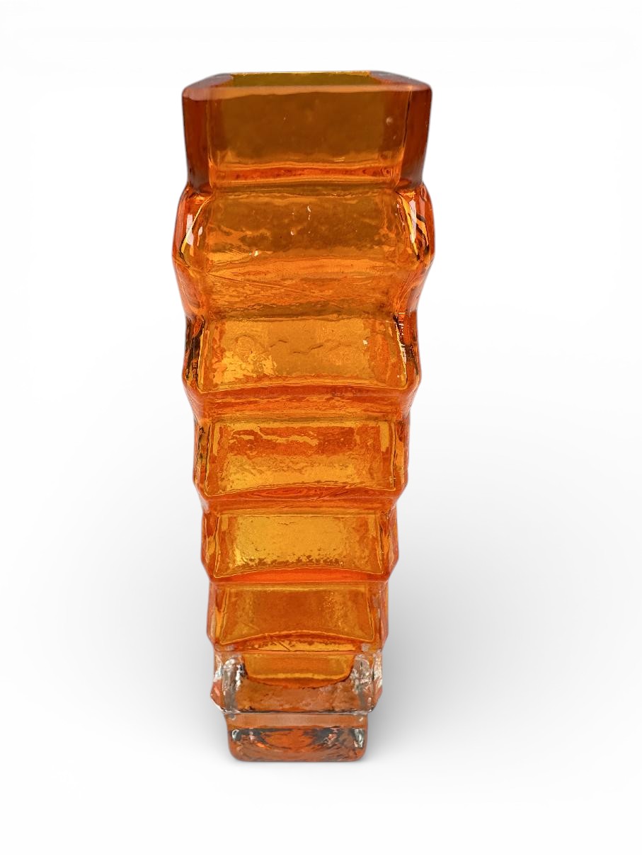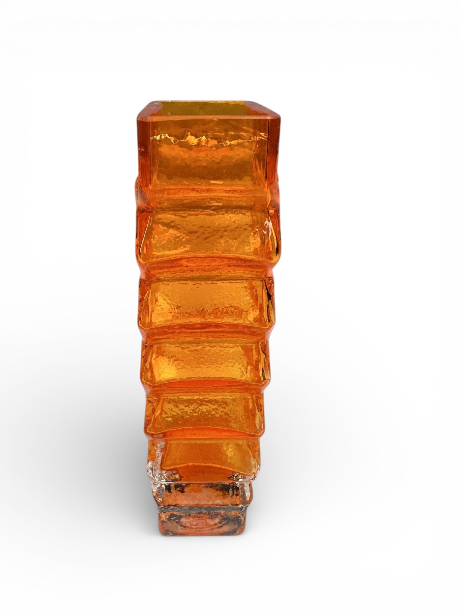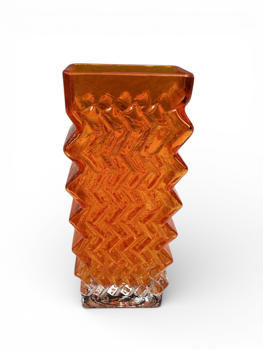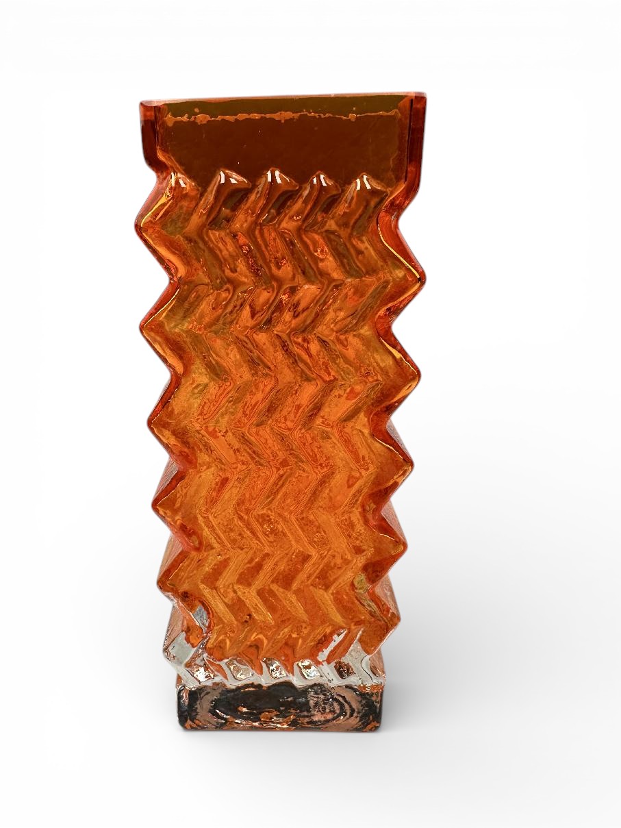 This is an original WHITEFRIARS Zig Zag vase in the TANGO (orange) colour.